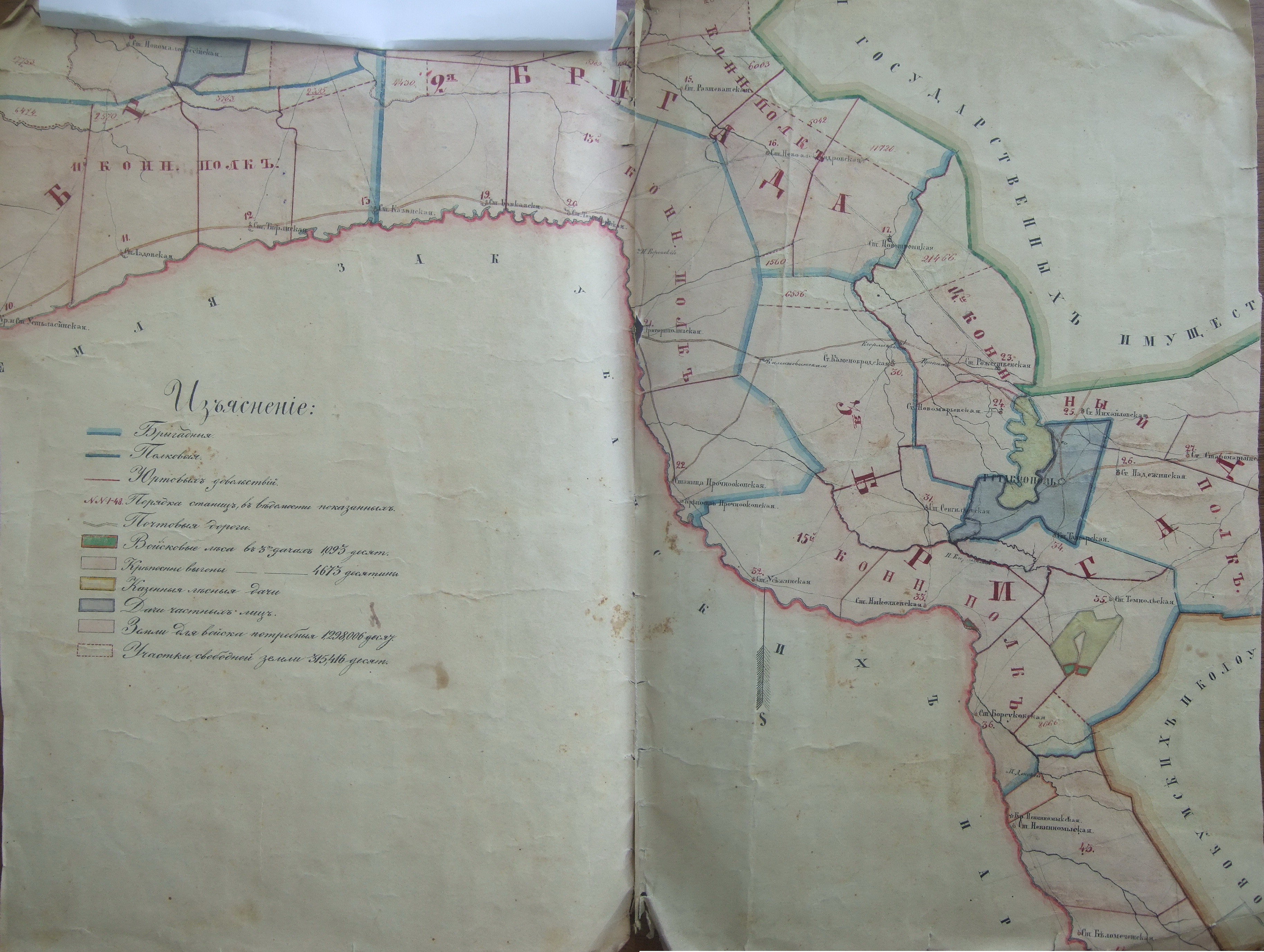 Фрагмент карты Кавказского Линейного казачьего войска (Старая Линия)