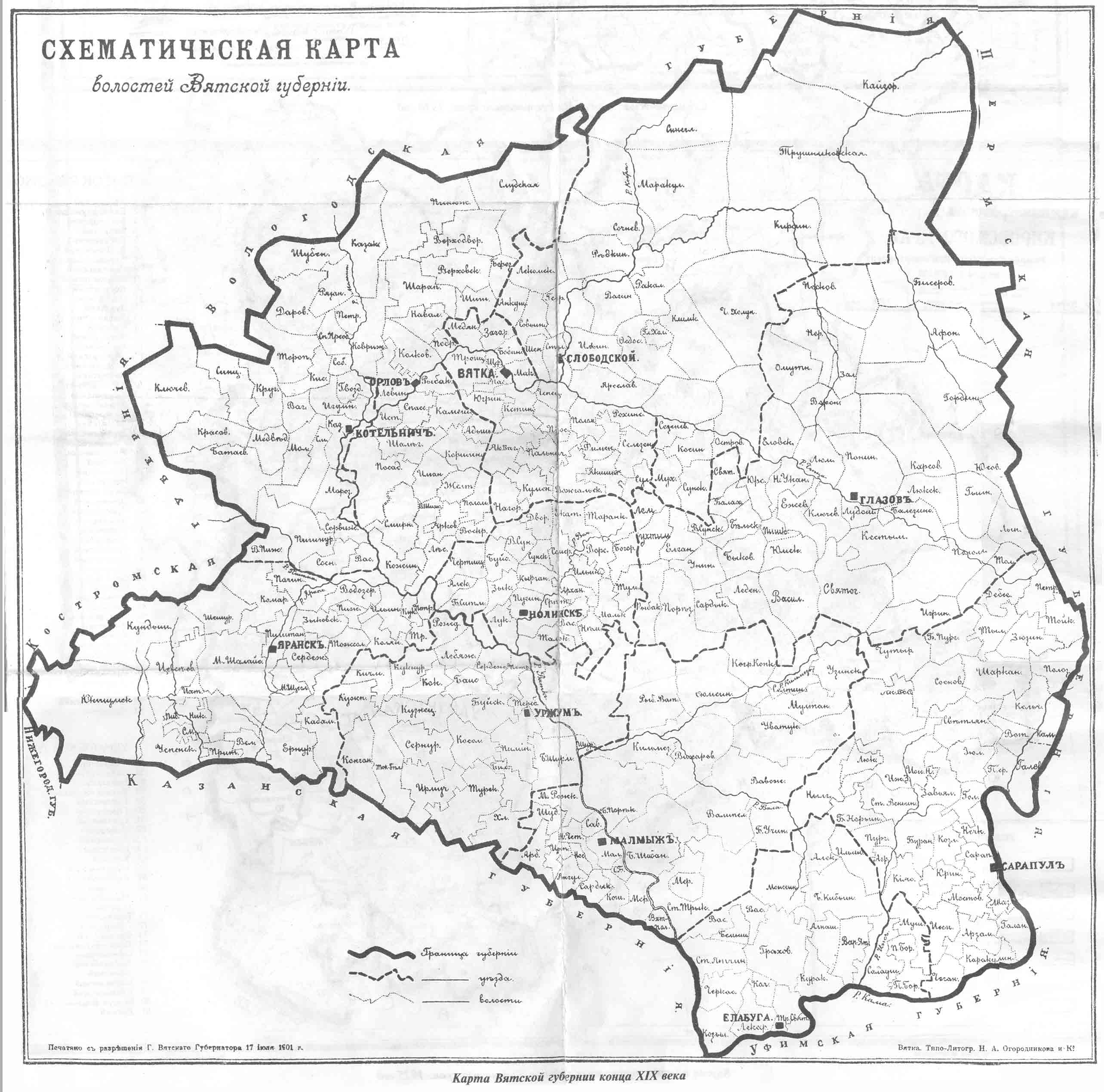 Схематичесая карта волостей Вятской губернии