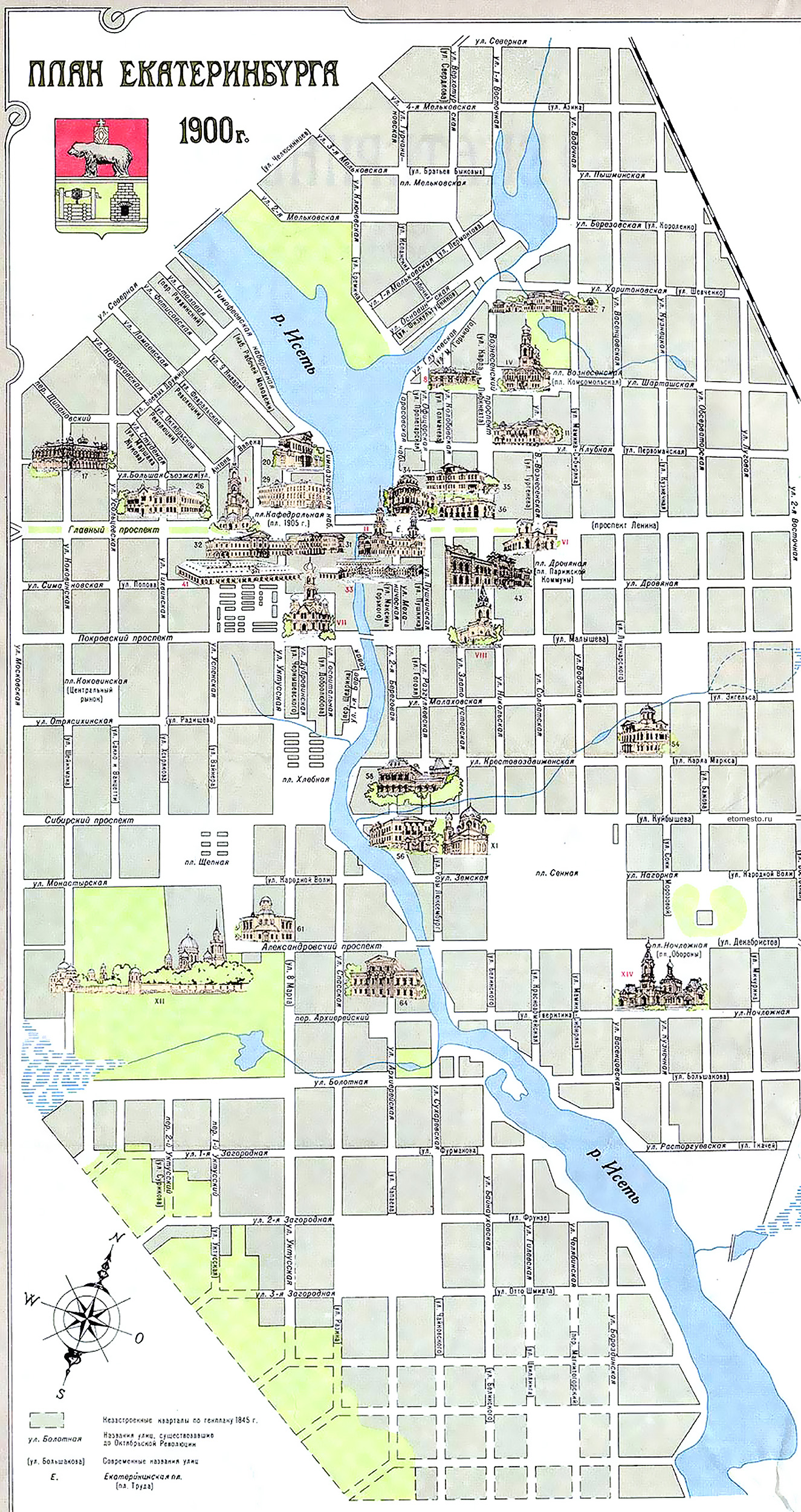 Екатеринбург на плане 1900 года