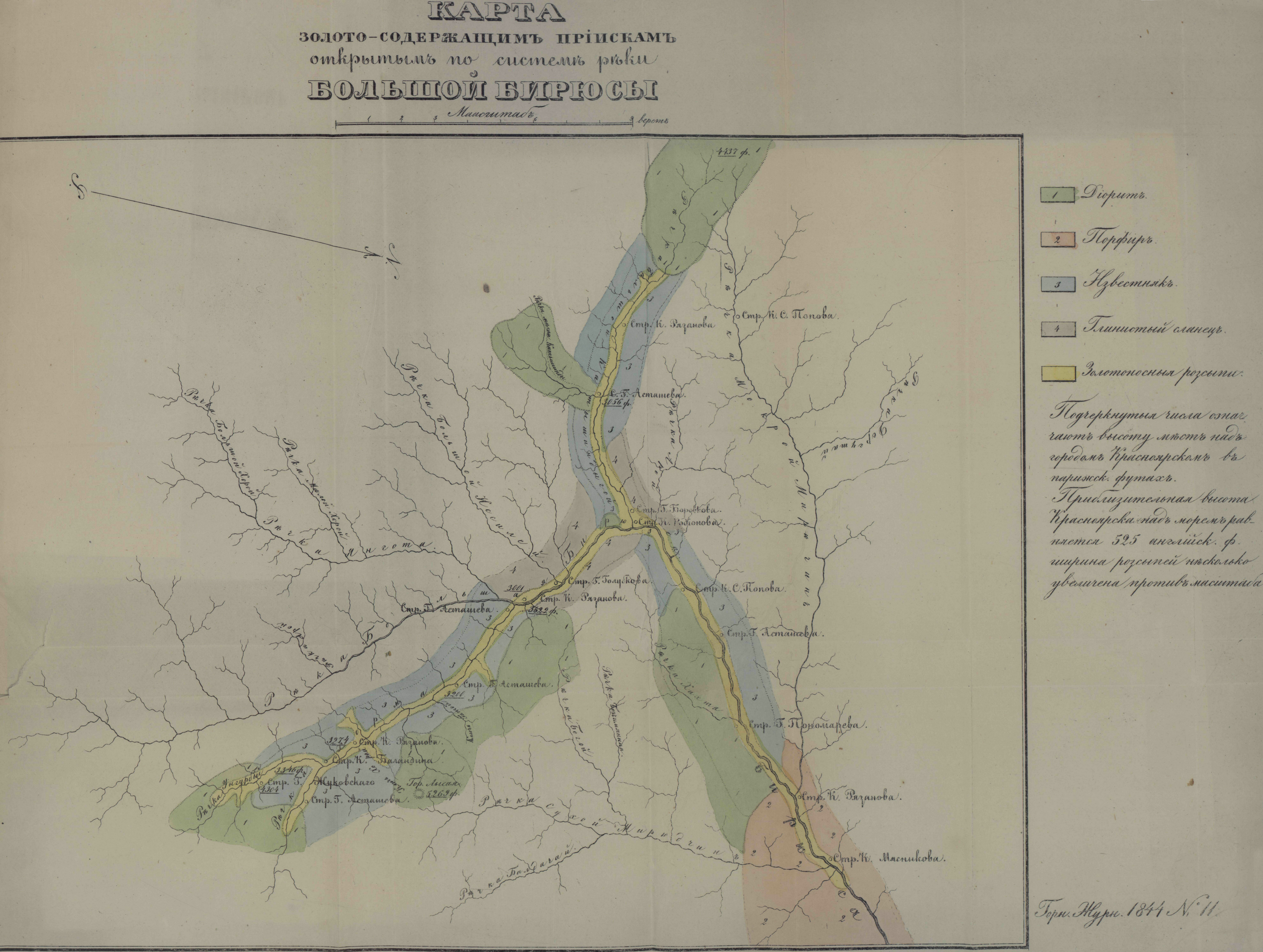 Золотые прииски Енисейского округа и по системе реки Большой Бирюсы