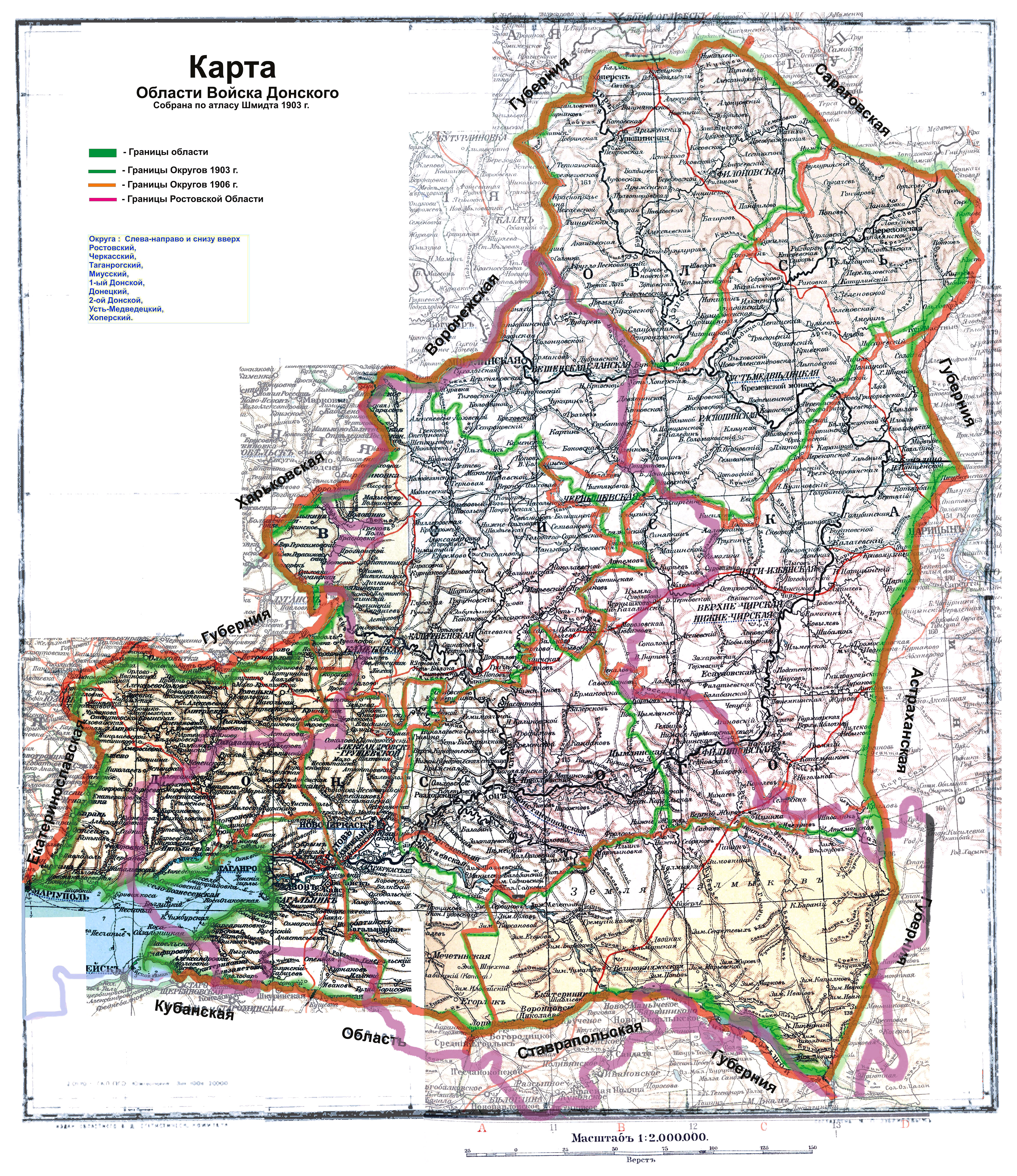 Карта земель Войска Донского в 1903 году