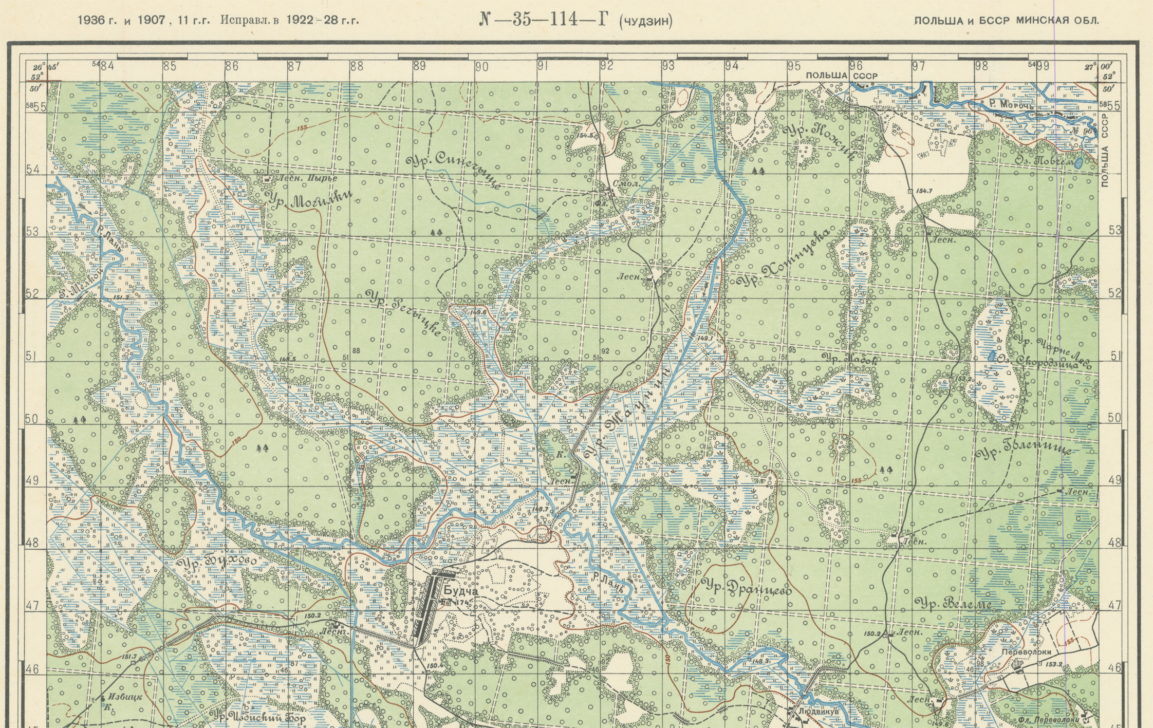 Чудзин (N-35-114-Г) 1907, 1936 гг.