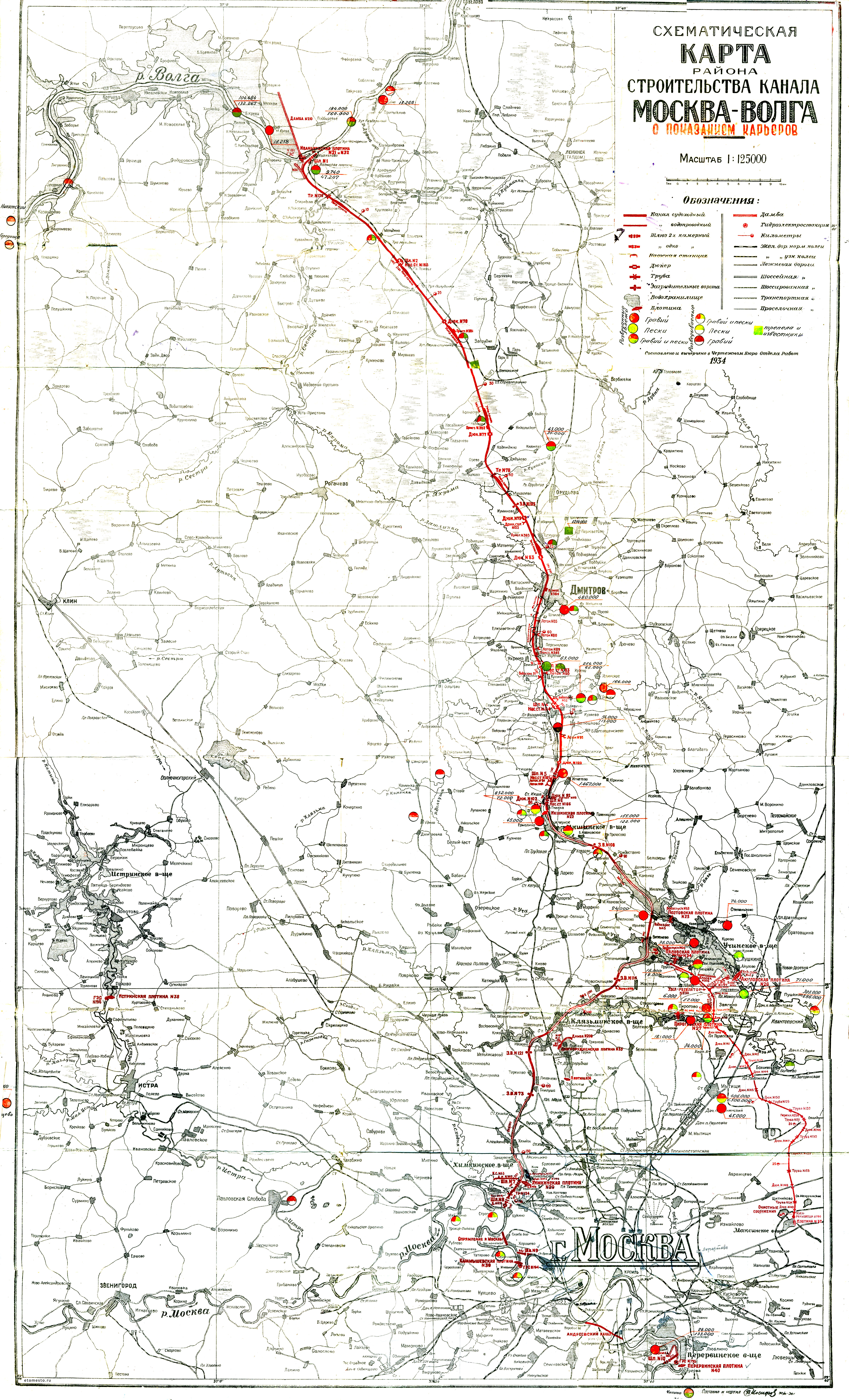 Карта Схематическая карта района строительства канала Москва-Волга с показанием карьеров