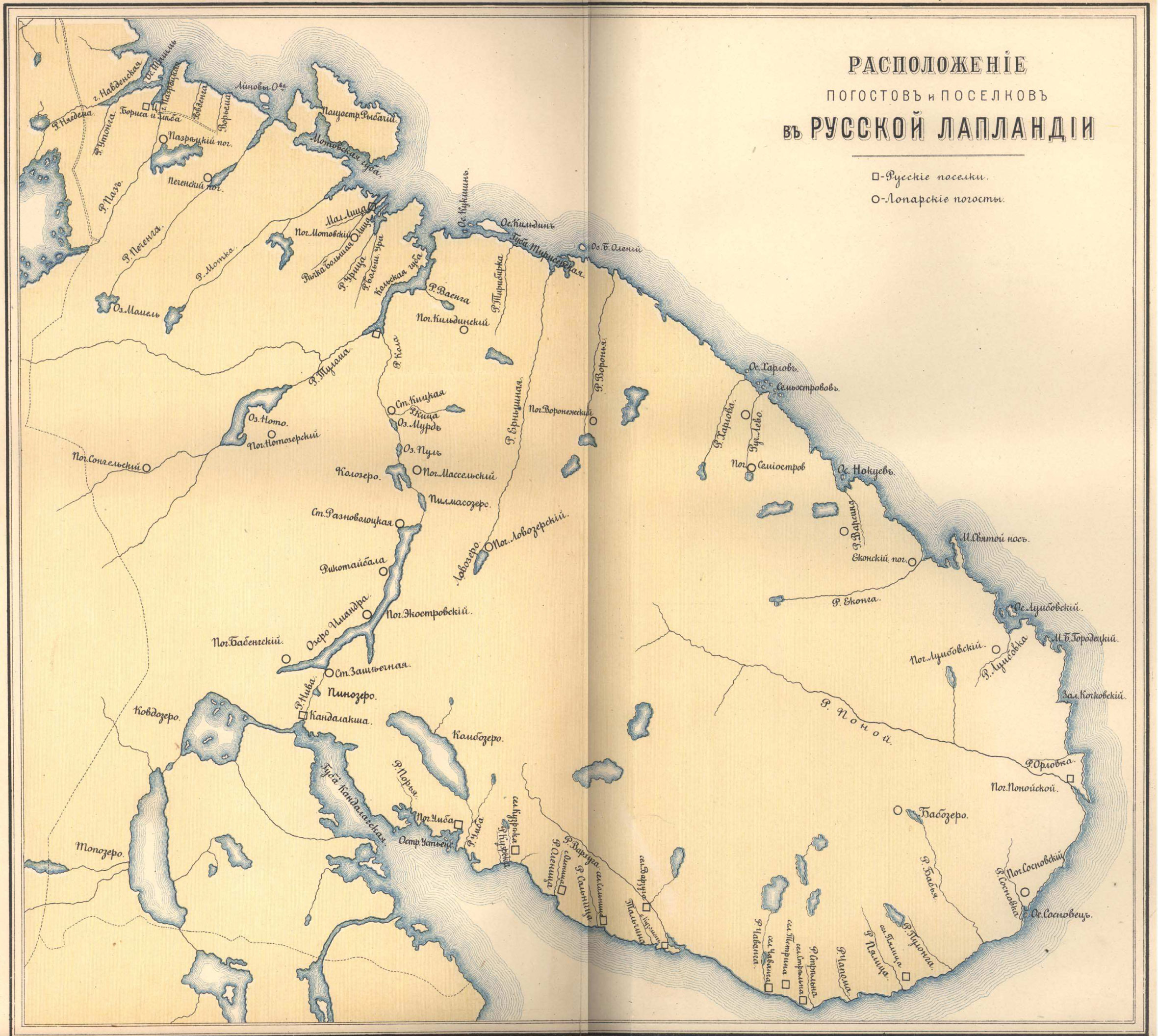 Расположение погостов и поселков в Русской Лапландии