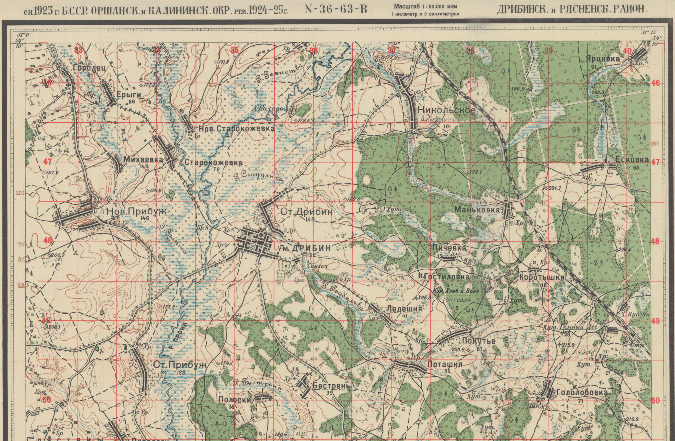 Дрибинский и Рясненский р-он (N-36-63-В) 1923г.