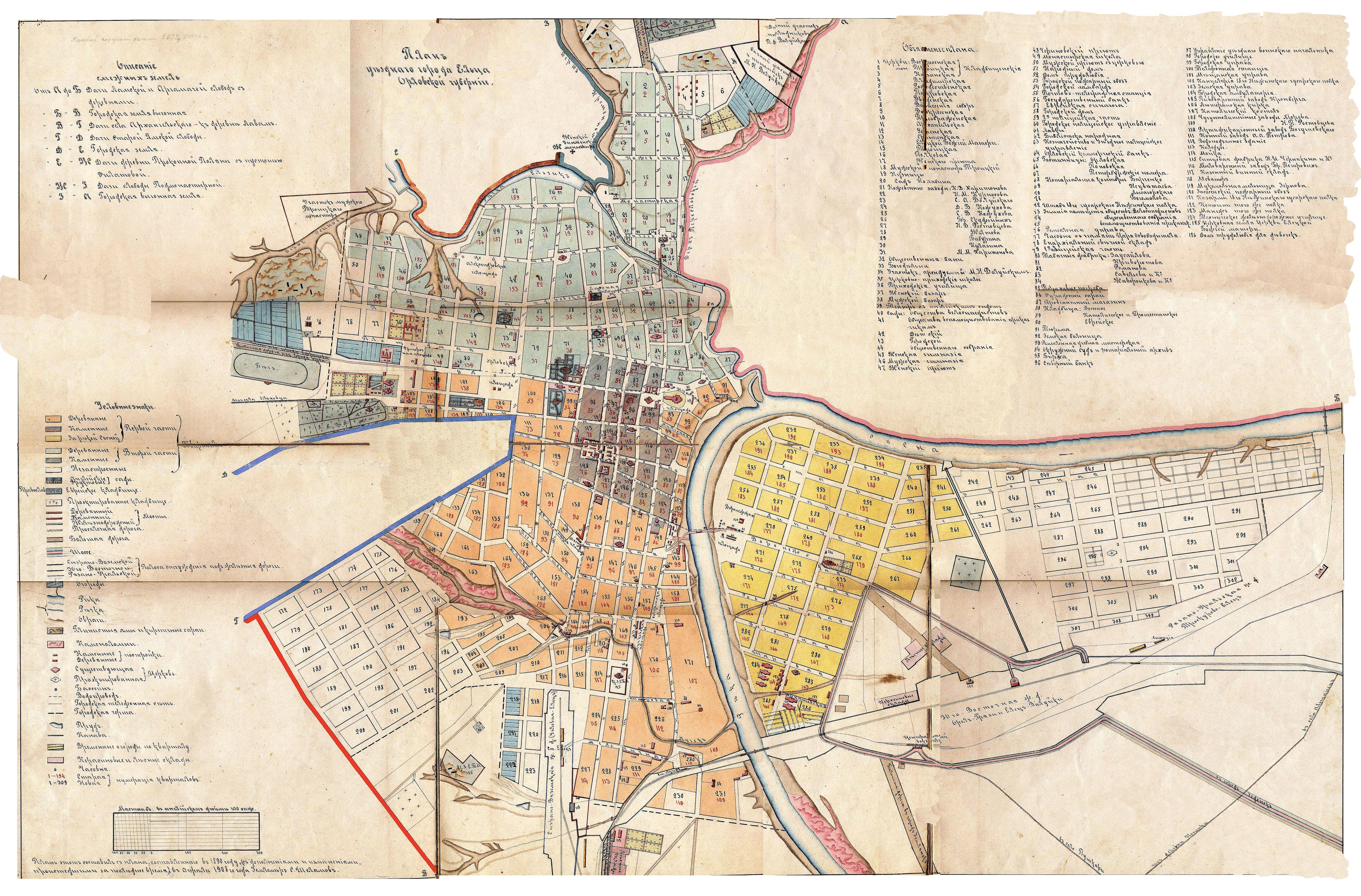 карта Ельца 1890г. с правками 1908г