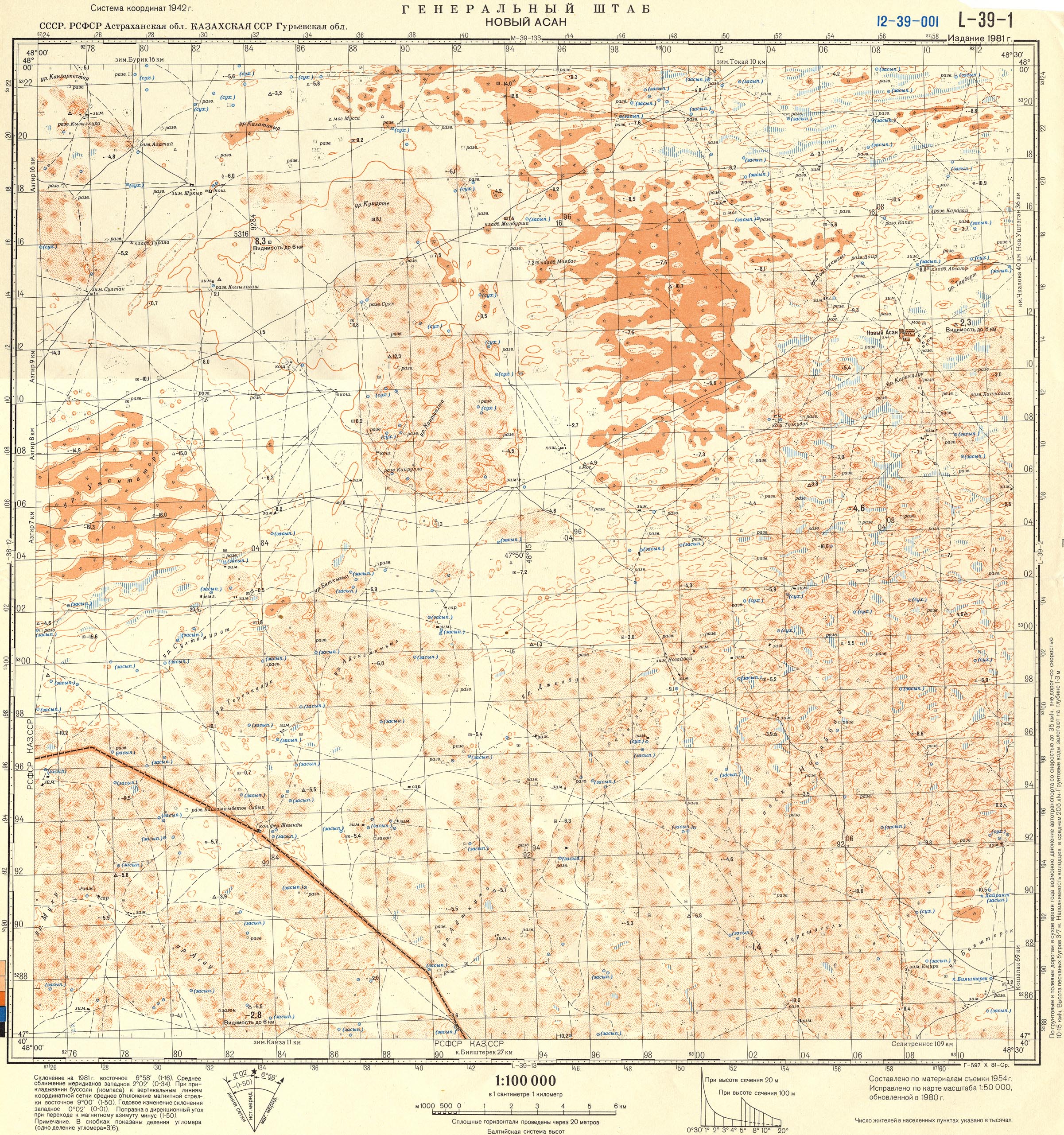 Топографическая карта L39 Астраханская область, Казахстан (Гурьевская и Мангышлакская области) l