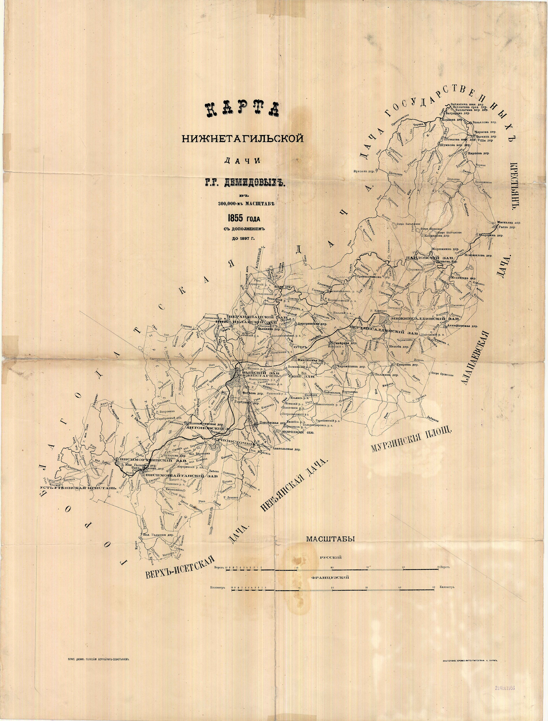 Карта Нижнетагильской дачи Демидовых. 1855г.
