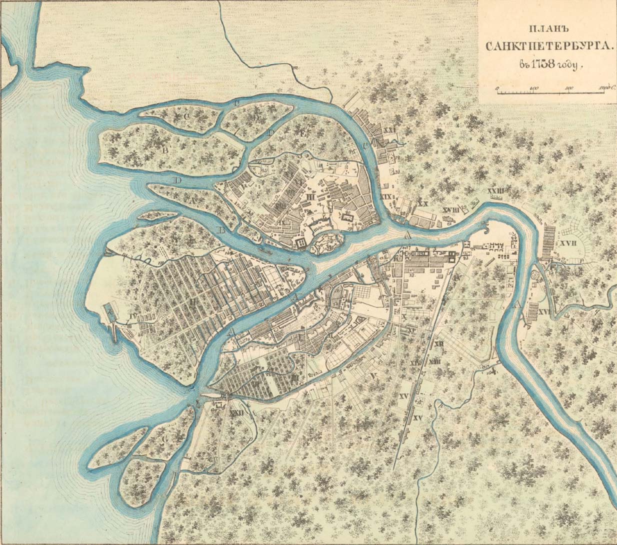 План Санкт-Петербурга в 1738 году.