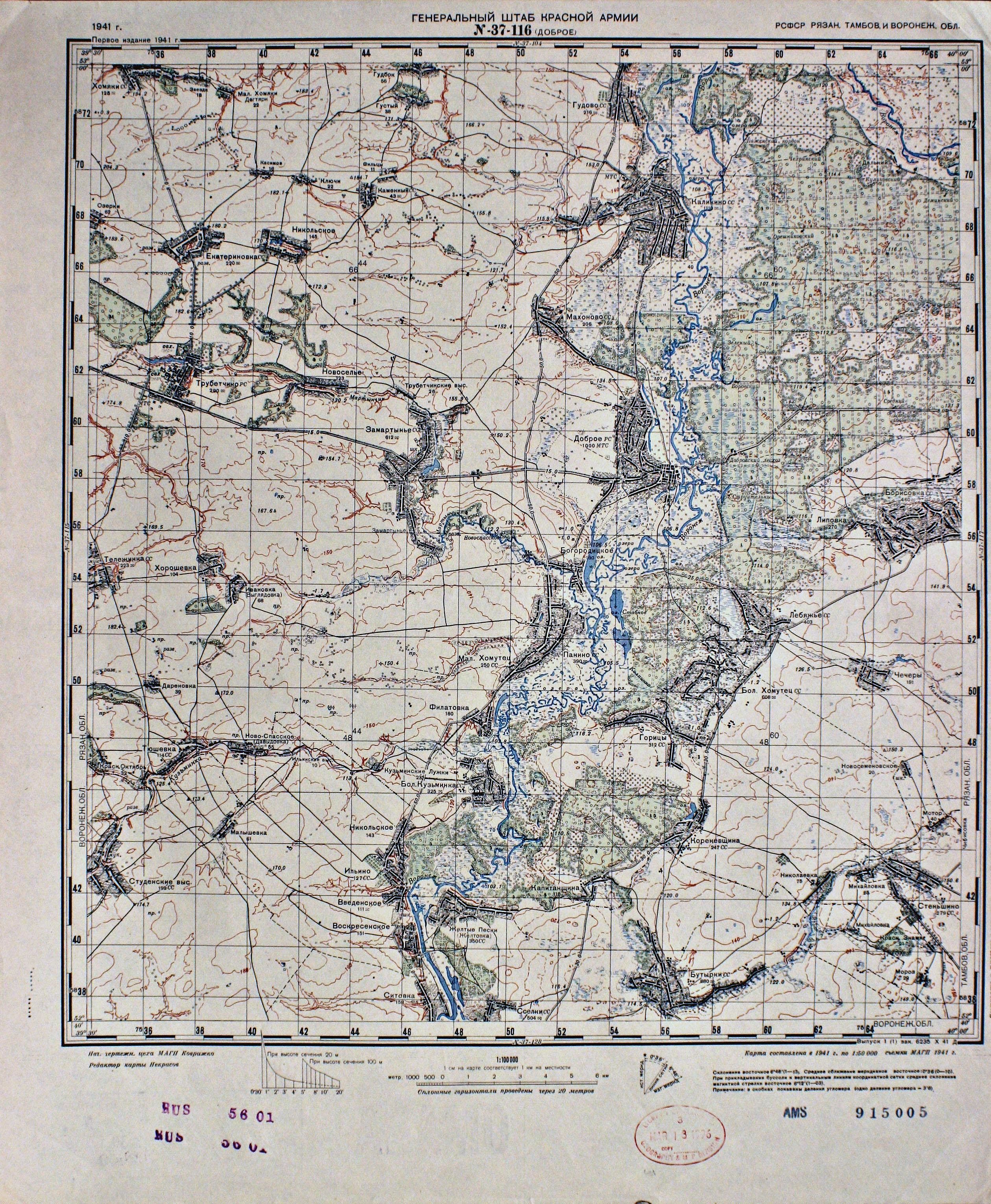 Рязанская - Тамбовская - Воронежская - (N-37-116) - Доброе - 1941г