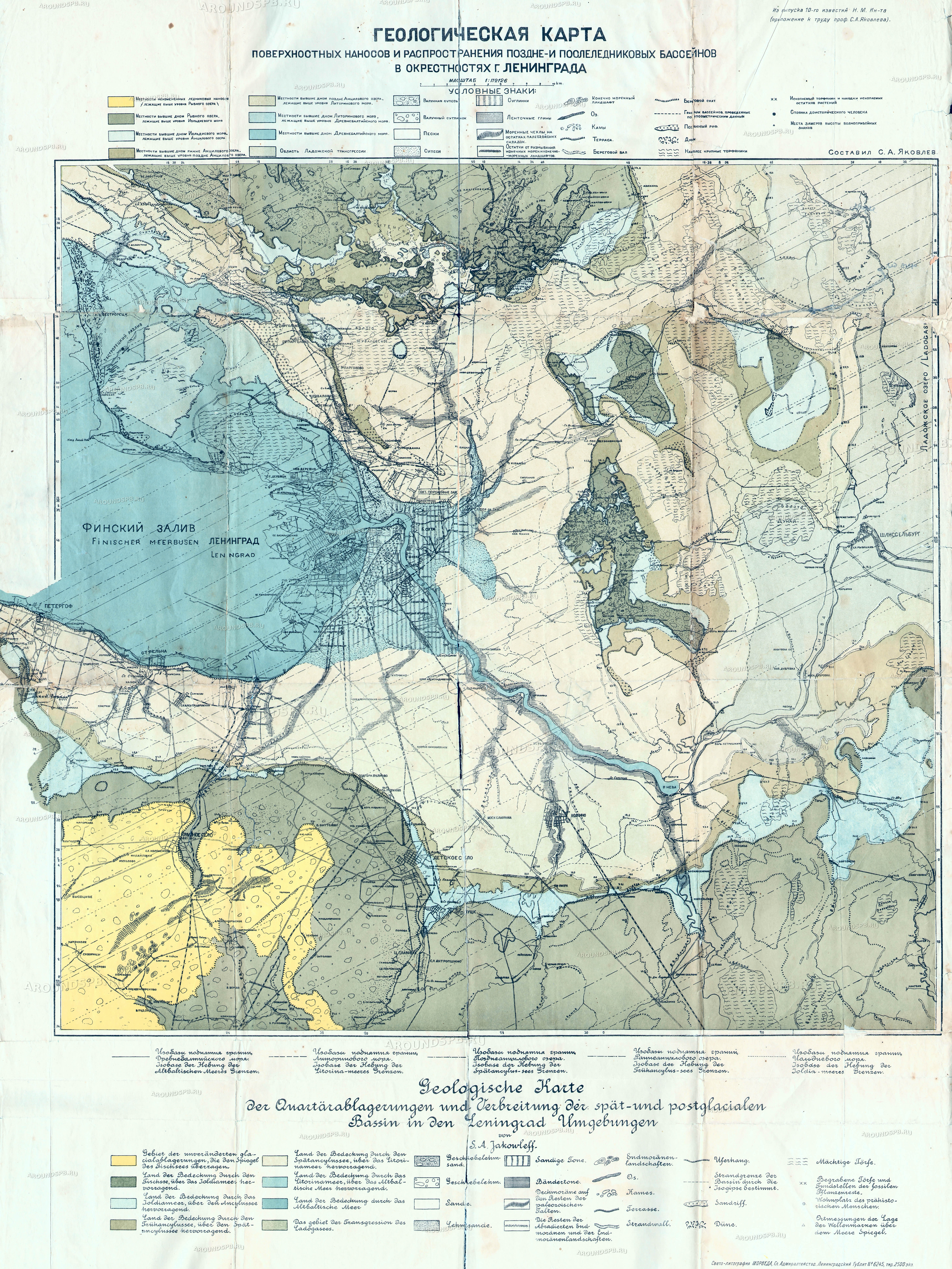 Геологическая карта наносов в окрестностях Ленинграда в 1925 году