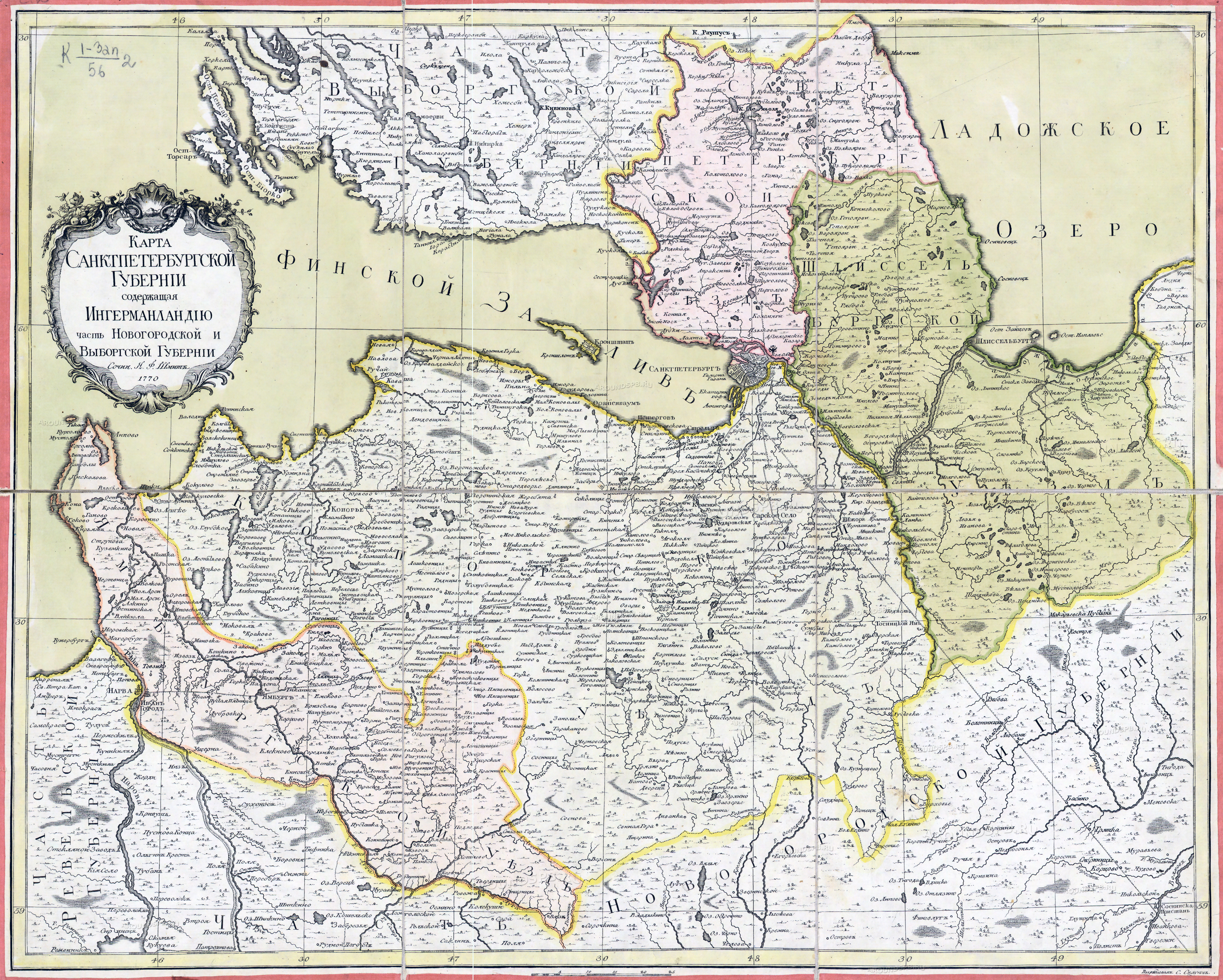 Карта Санкт-Петербургской губернии в 1770 году