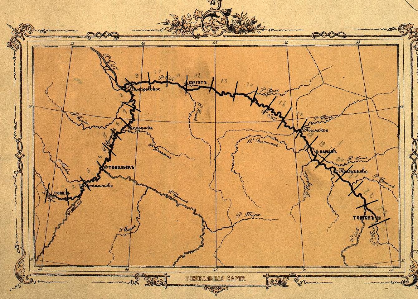 Карта-дорожник по рекам Западной Сибири в 1884 году