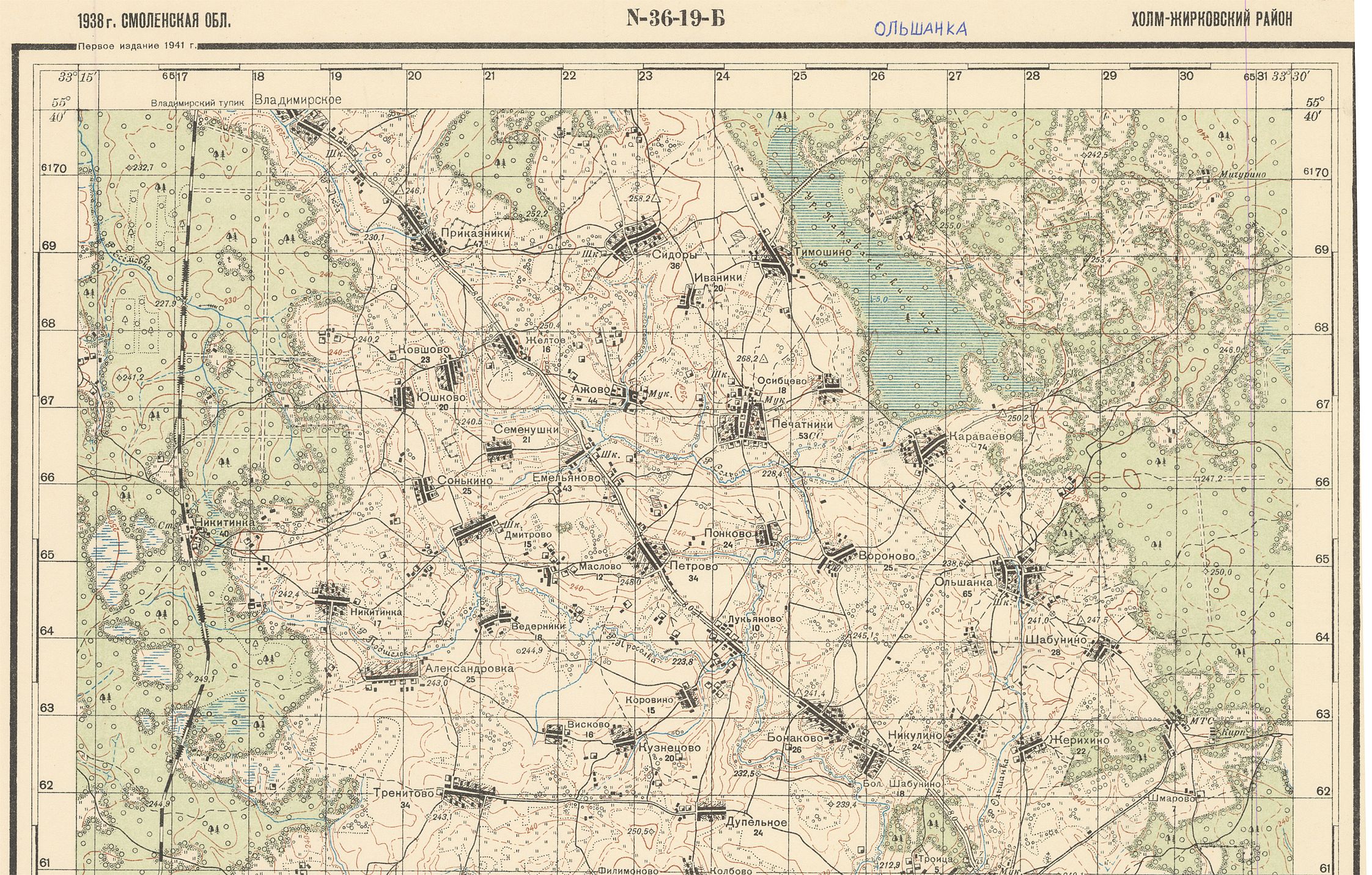 Смоленская - (N-36-19-Б) - Ольшанка - 1938г.