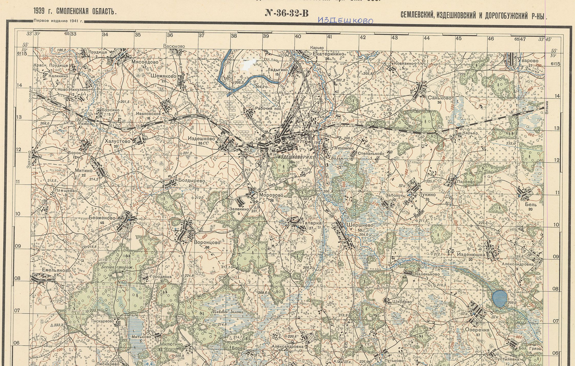 Смоленская - (N-36-32-В) - Издешково - 1939г.