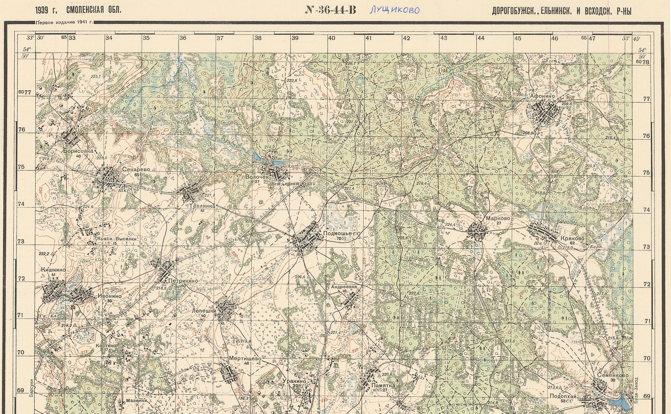 Смоленская - (M-36-44-В) - Лущиково - 1939г