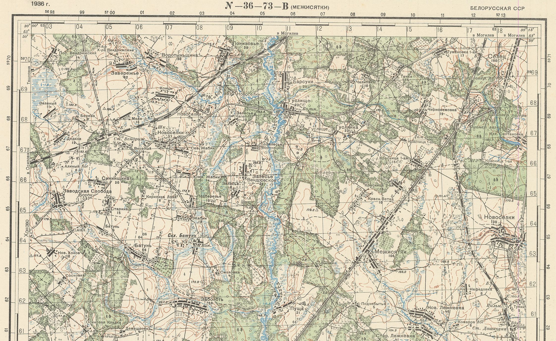 БССР - Могилевская - (N-36-73-В) - Межисятки - 1936г