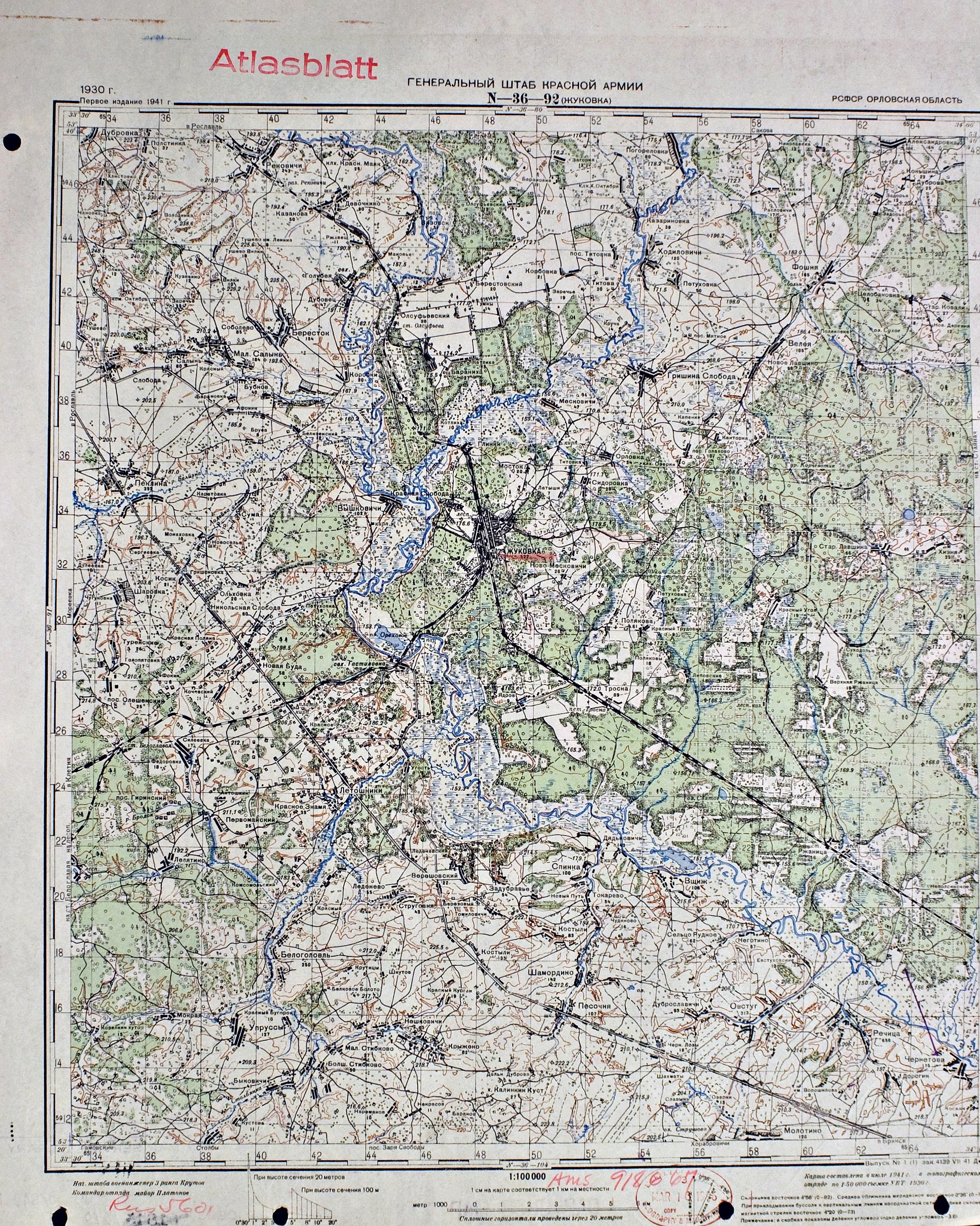 Номер листа: N-36-92 - Жуковка - 1941г