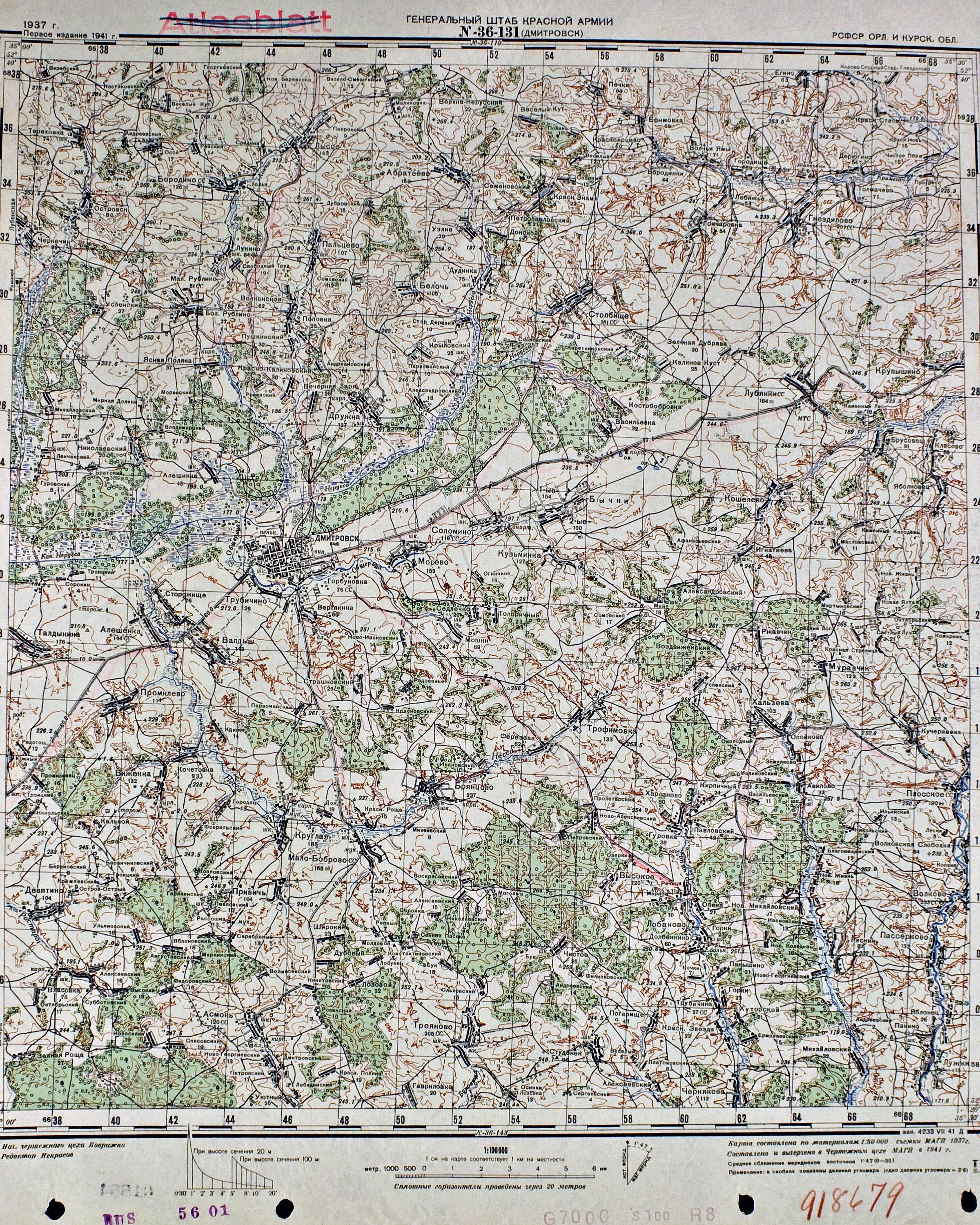 Орловская - Курская - (N-36-131) - Дмитровск - 1941г