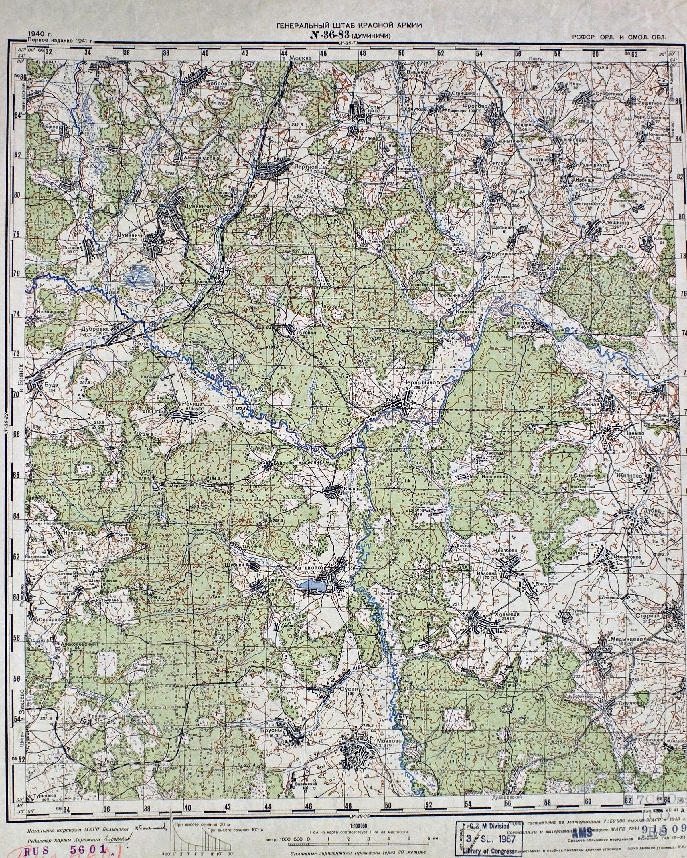 Орловская - Смоленская - (N-36-83) - Думиничи - 1941г