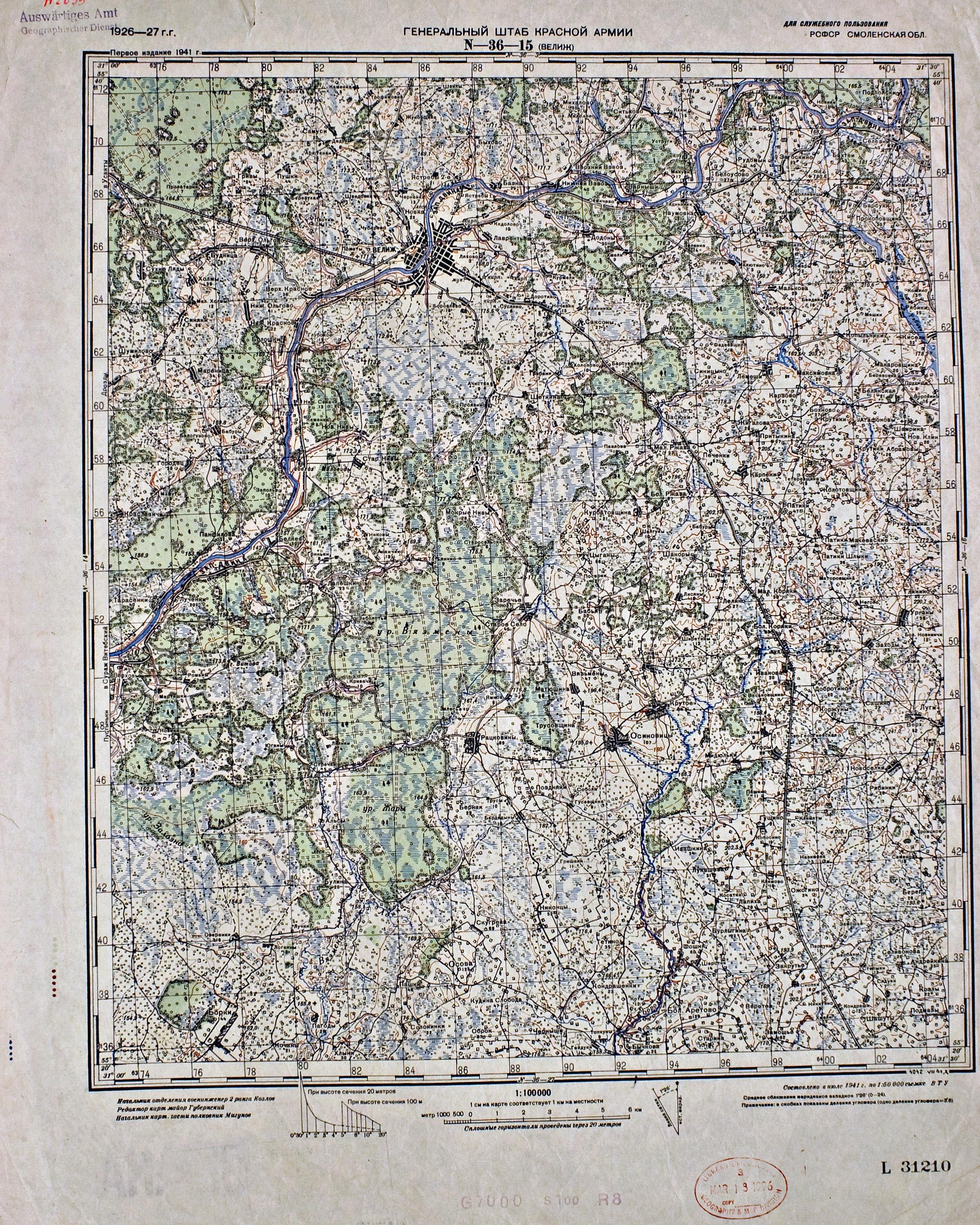 Смоленская - (N-36-15) - Велиж - 1941г