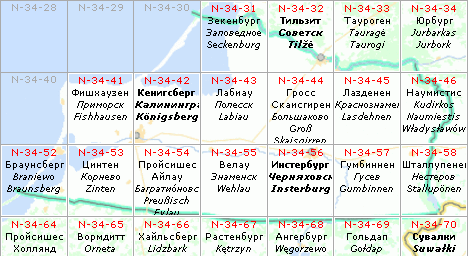 Листы карты Генштаба Красной Армии (РККА) Калининградской области N-34