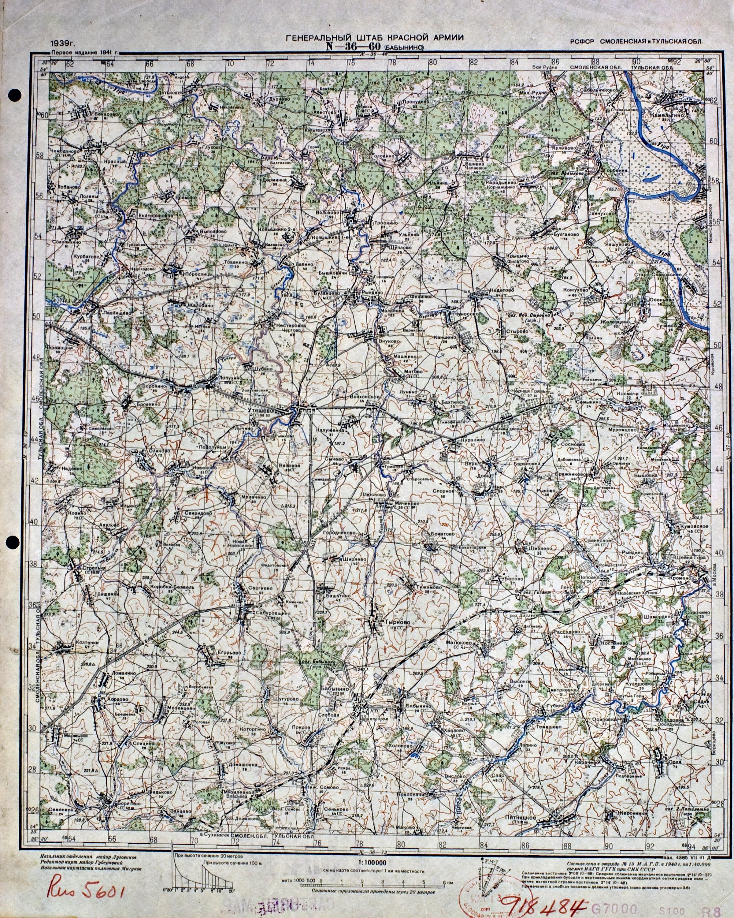 Смоленская - Тульская - (N-36-60) - Бабынино - 1941г