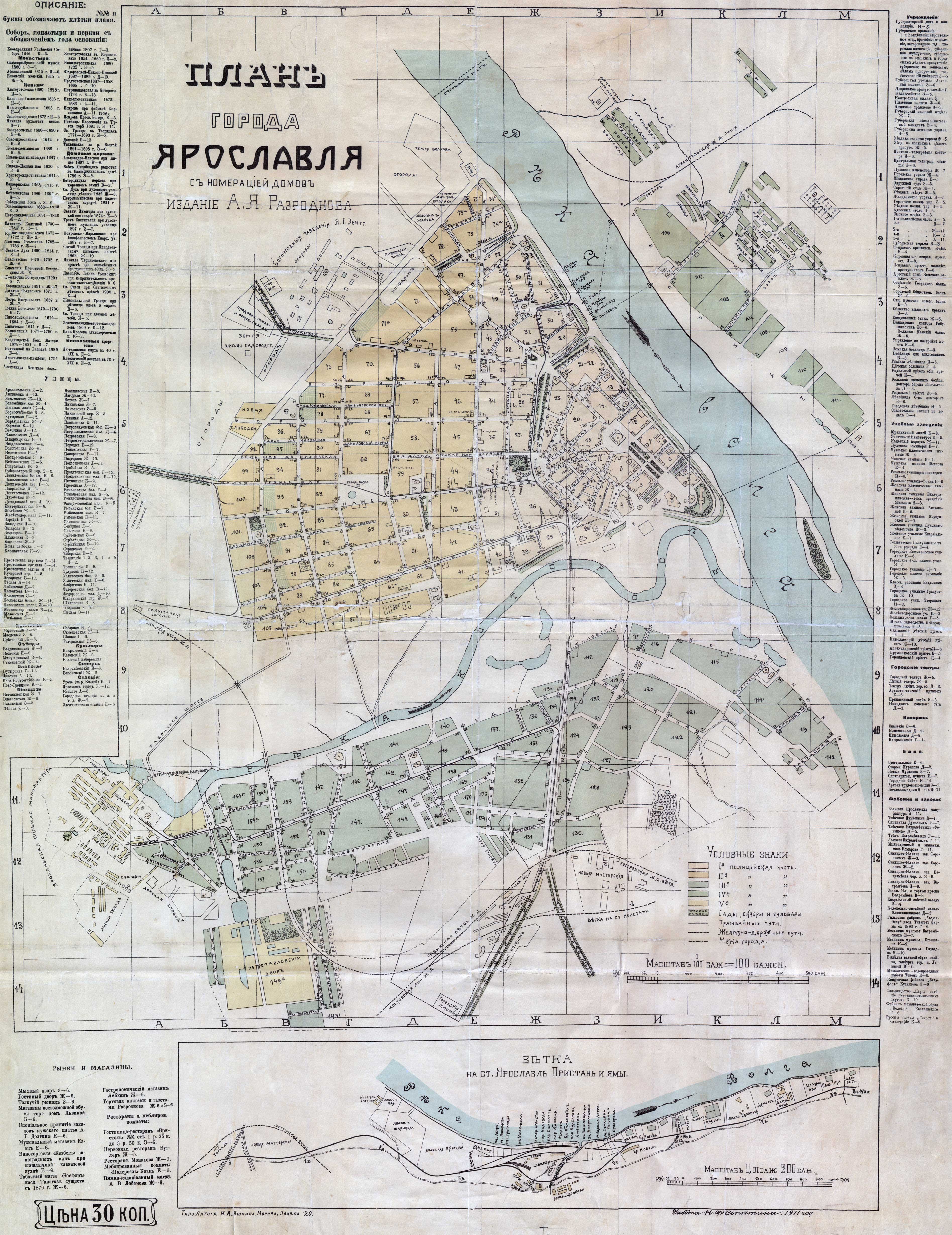 Карта Ярославля с нумерацией домов в 1911 году