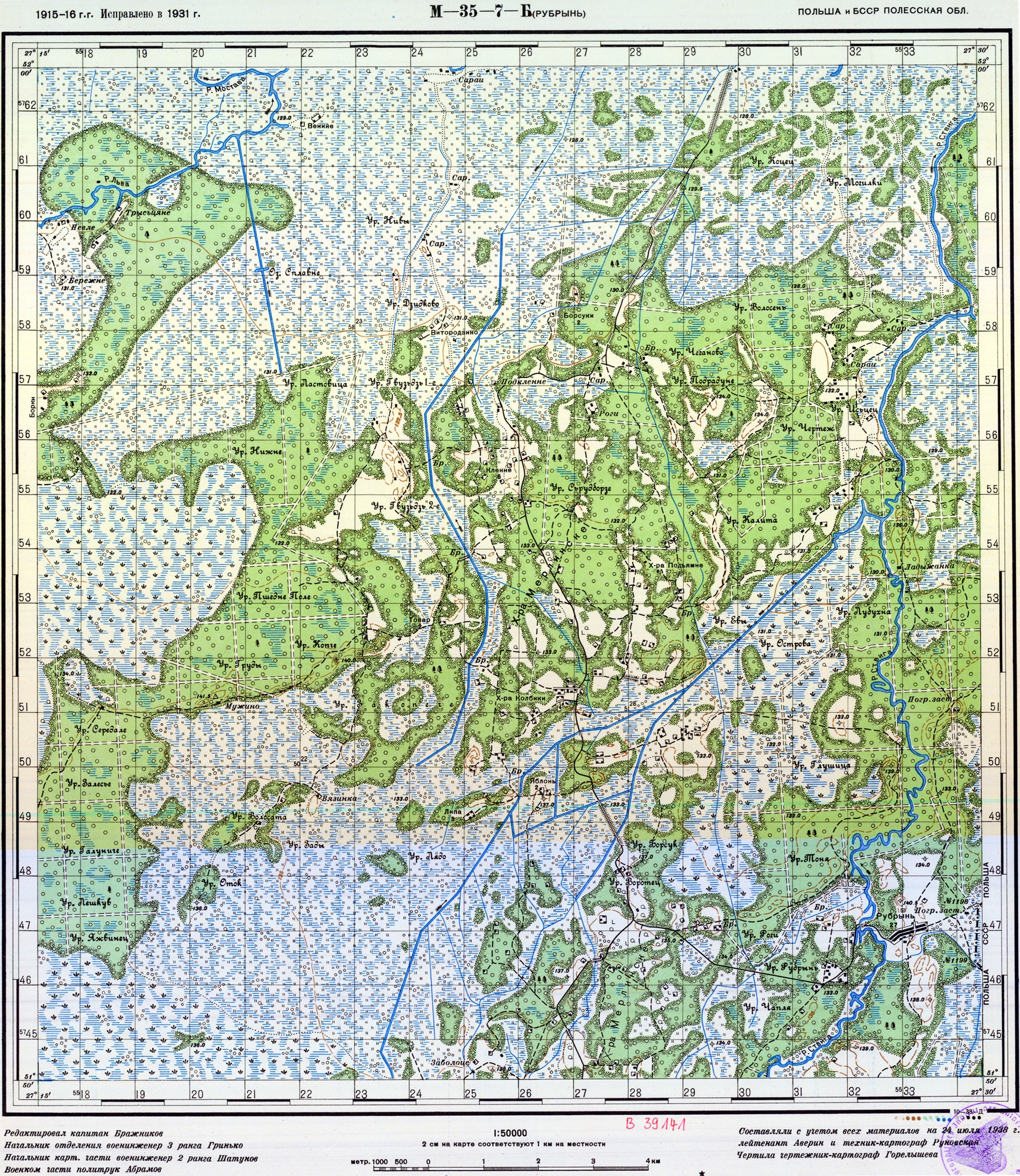 БССР - Полесская (Брестская) и Польша - (M-35-7-Б) - Рубрынь - 1931г