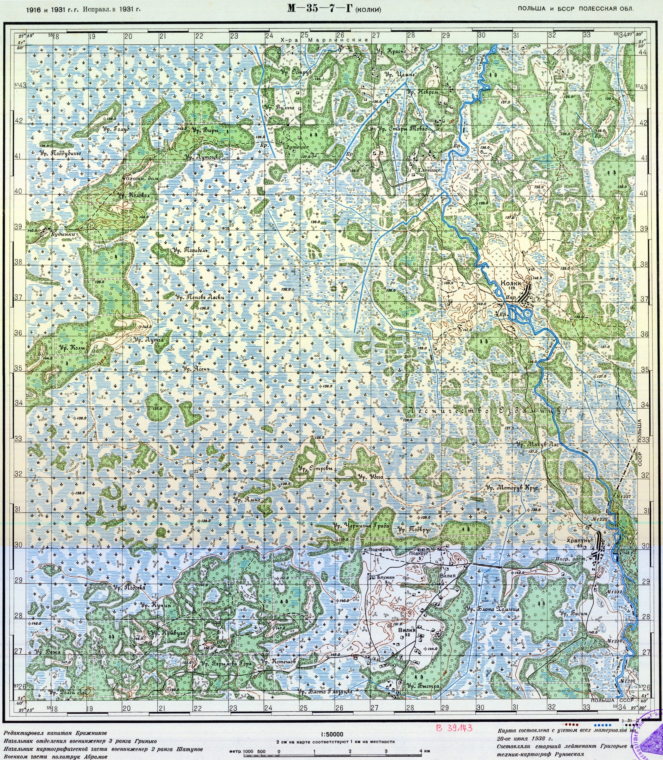 БССР - Полесская (Брестская) и Польша - (M-35-7-Г) - Колки - 1931г