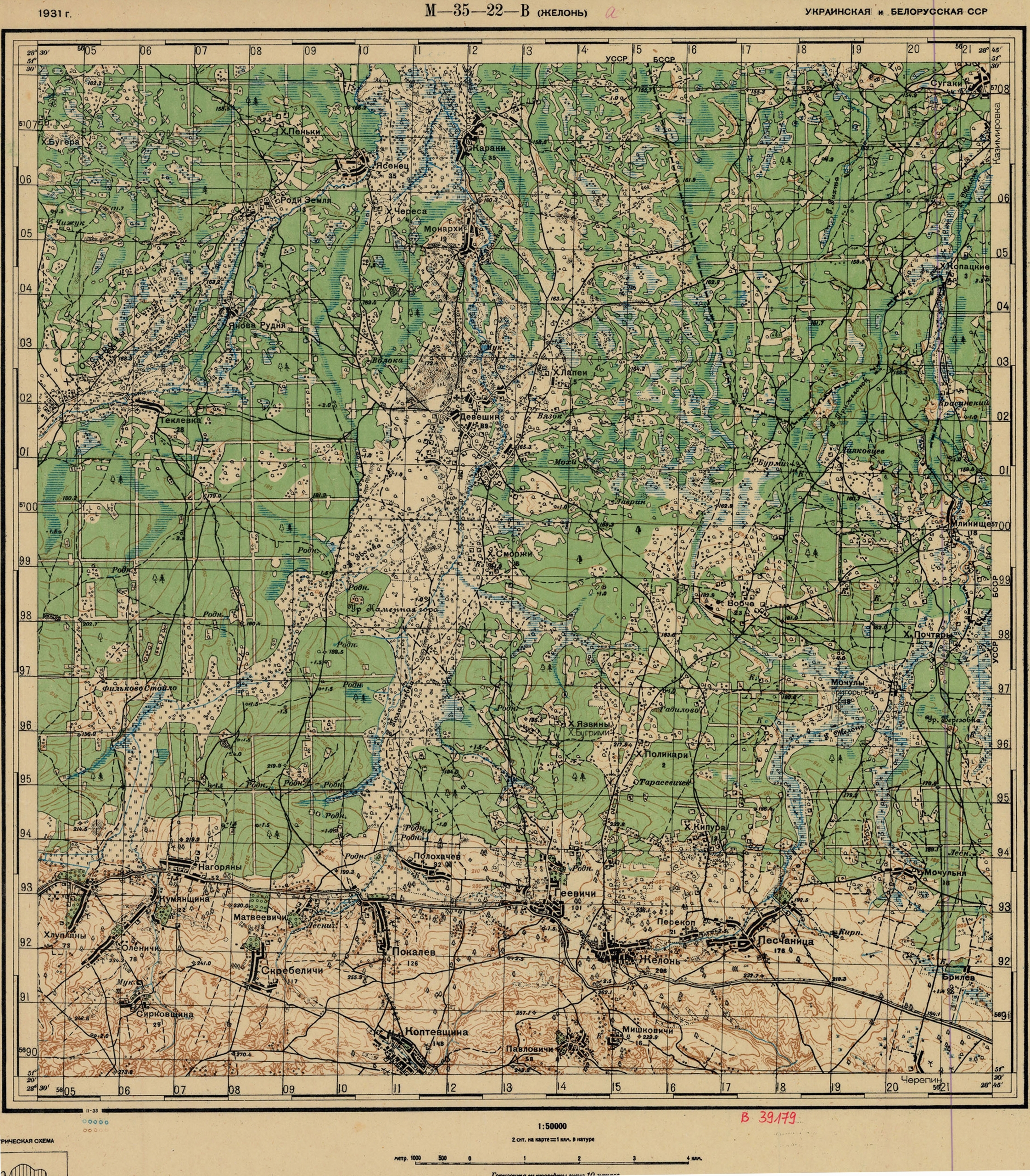 УССР (Житомирская) и БССР - (M-35-22-В) - Желонь - 1931г