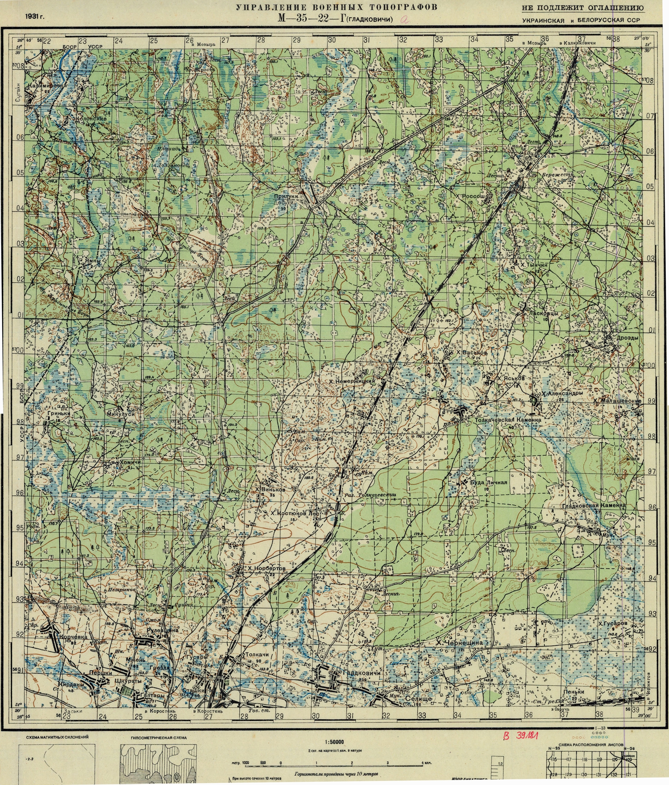 УССР (Житомирская) - БССР - (M-35-22-Г) - Гладковичи - 1931г