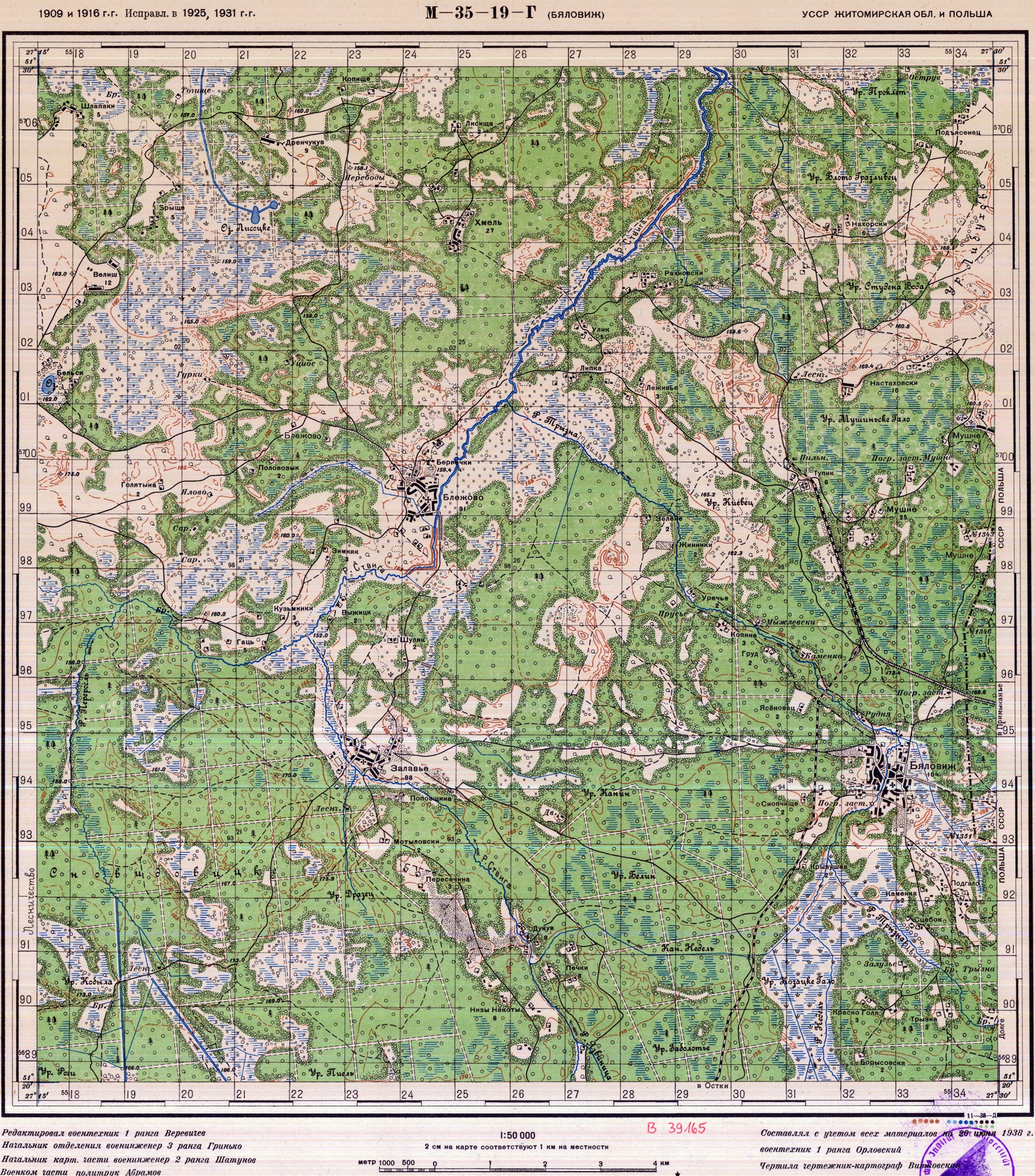 УССР (Житомирская) - БССР (Гомельская) - (M-35-19-Г) - Бяловиж - 1931г