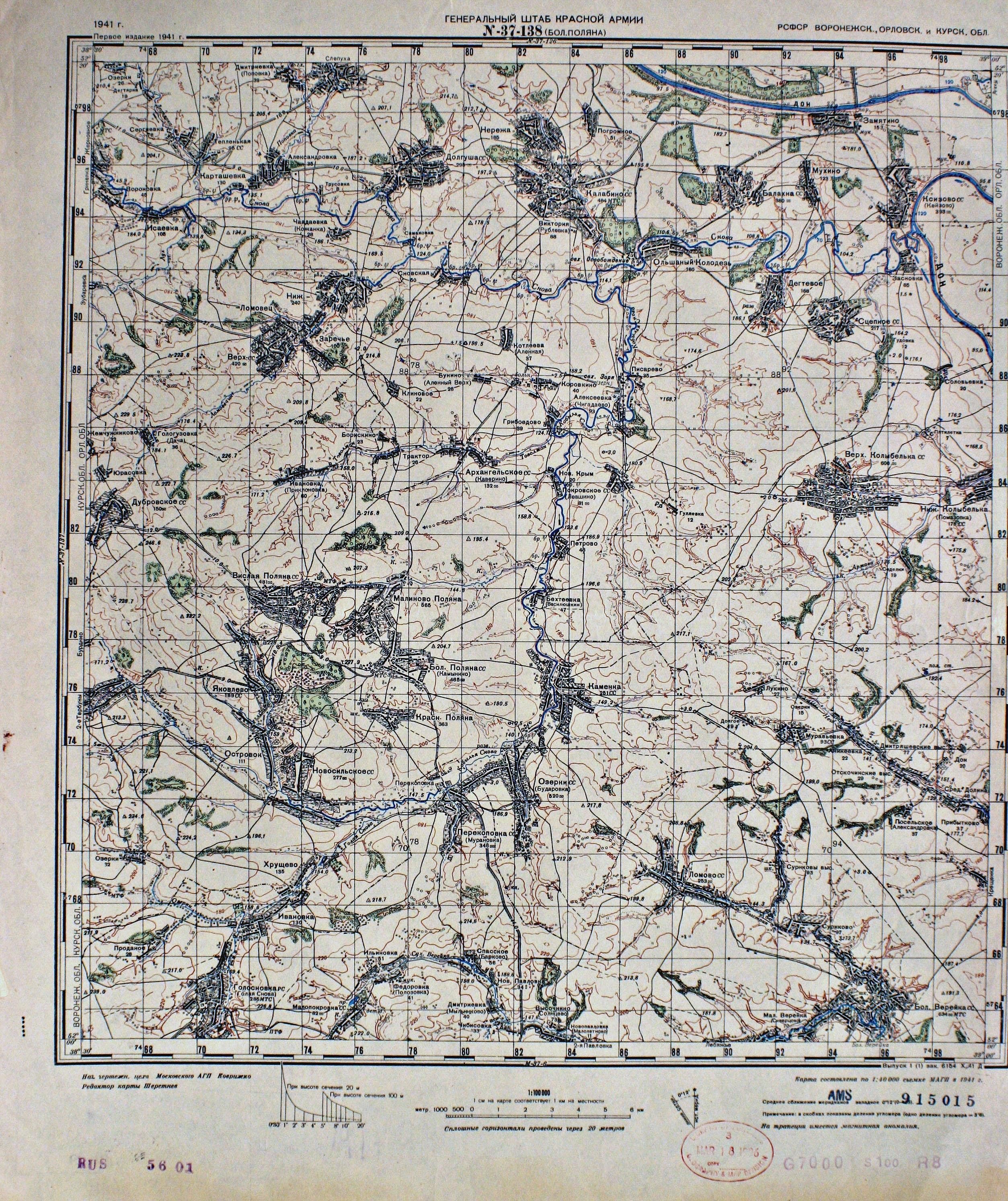 Воронежская - Орловская - Курская - (N-37-138) - Бол. Поляна - 1941г