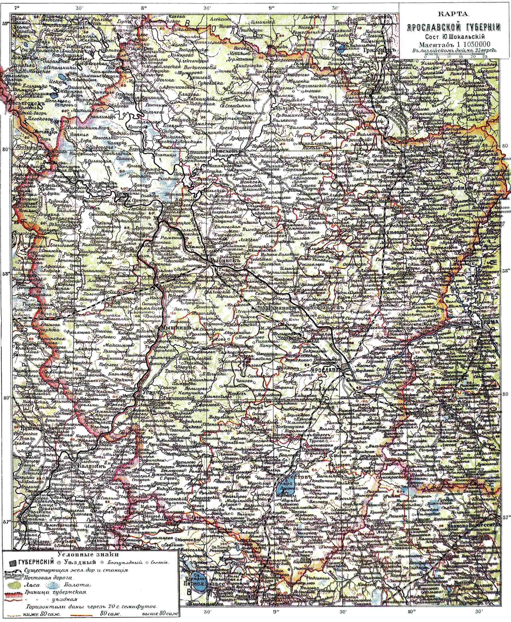 карта Ярославской губернии Ю.Шокальского