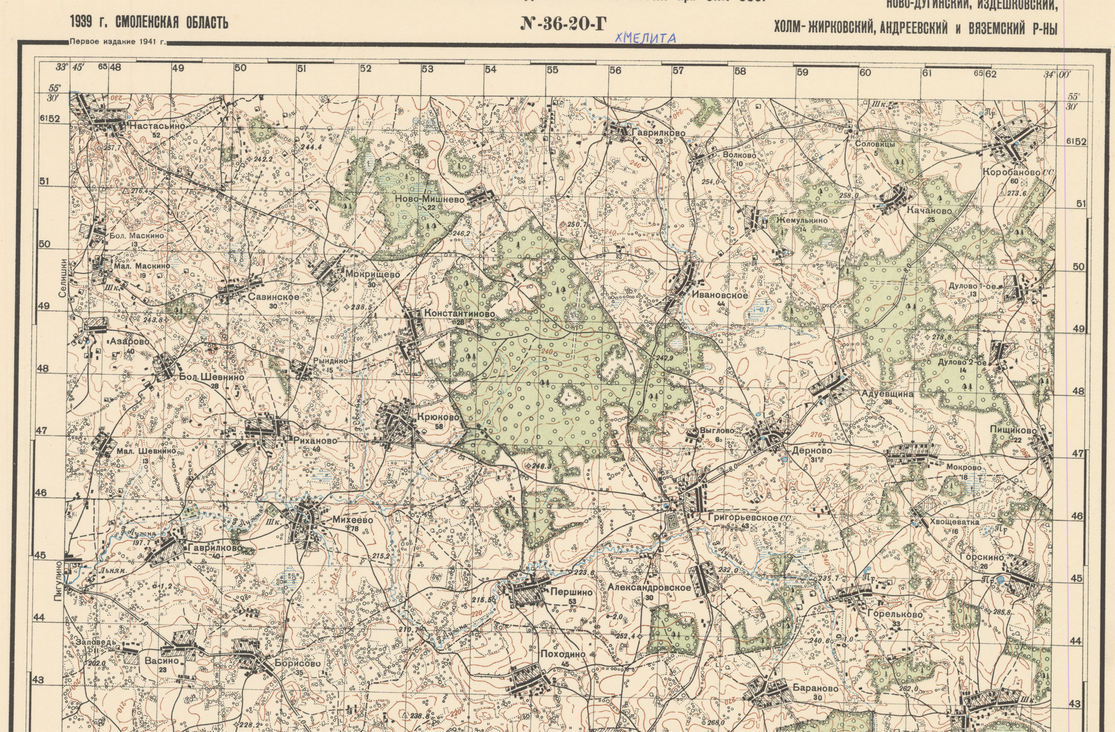 Смоленская - (N-36-20-Г) - Холм-Жирковский- 1939 - 1
