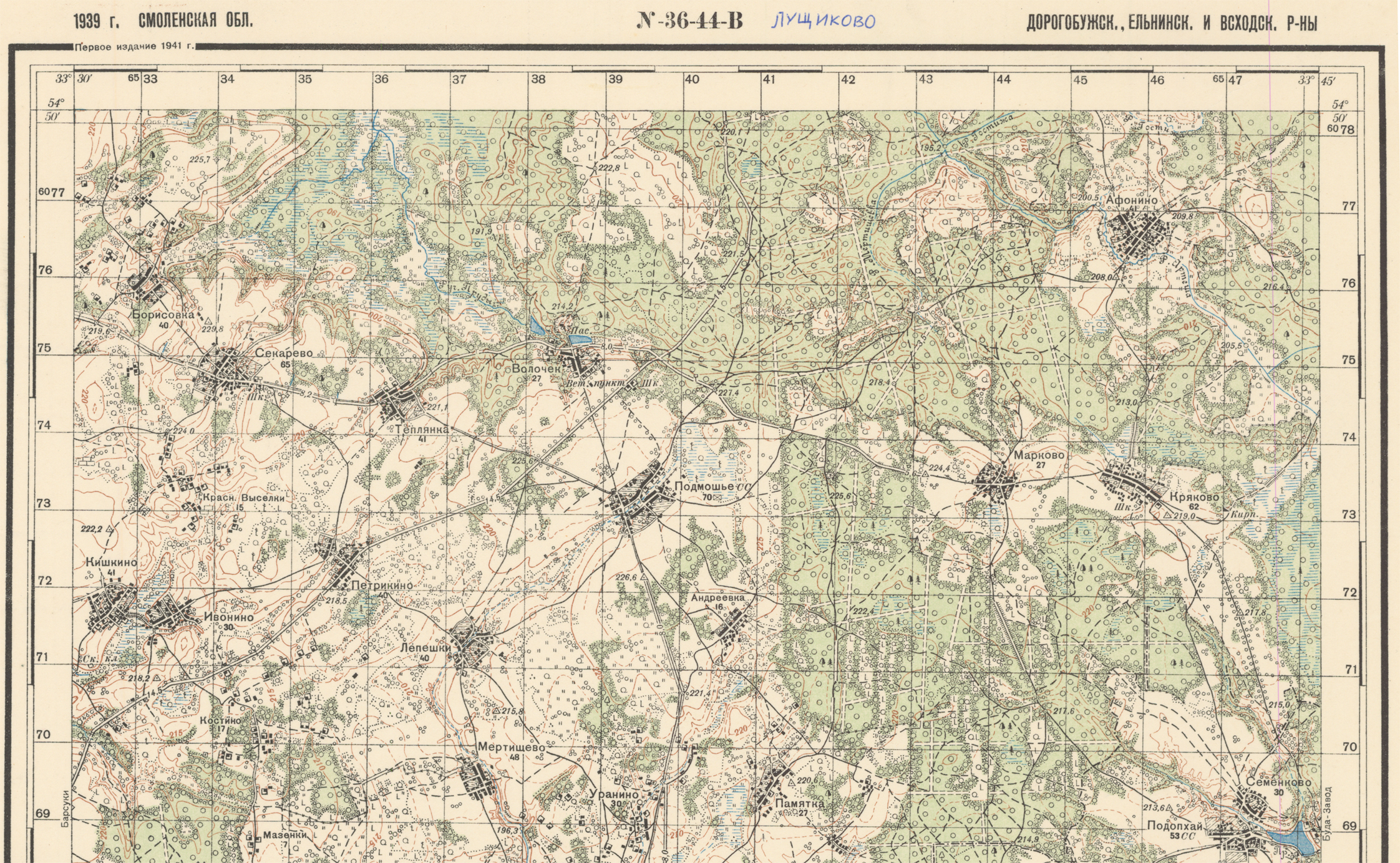 Смоленская - (N-36-44-В) - Лущиково - 1939г