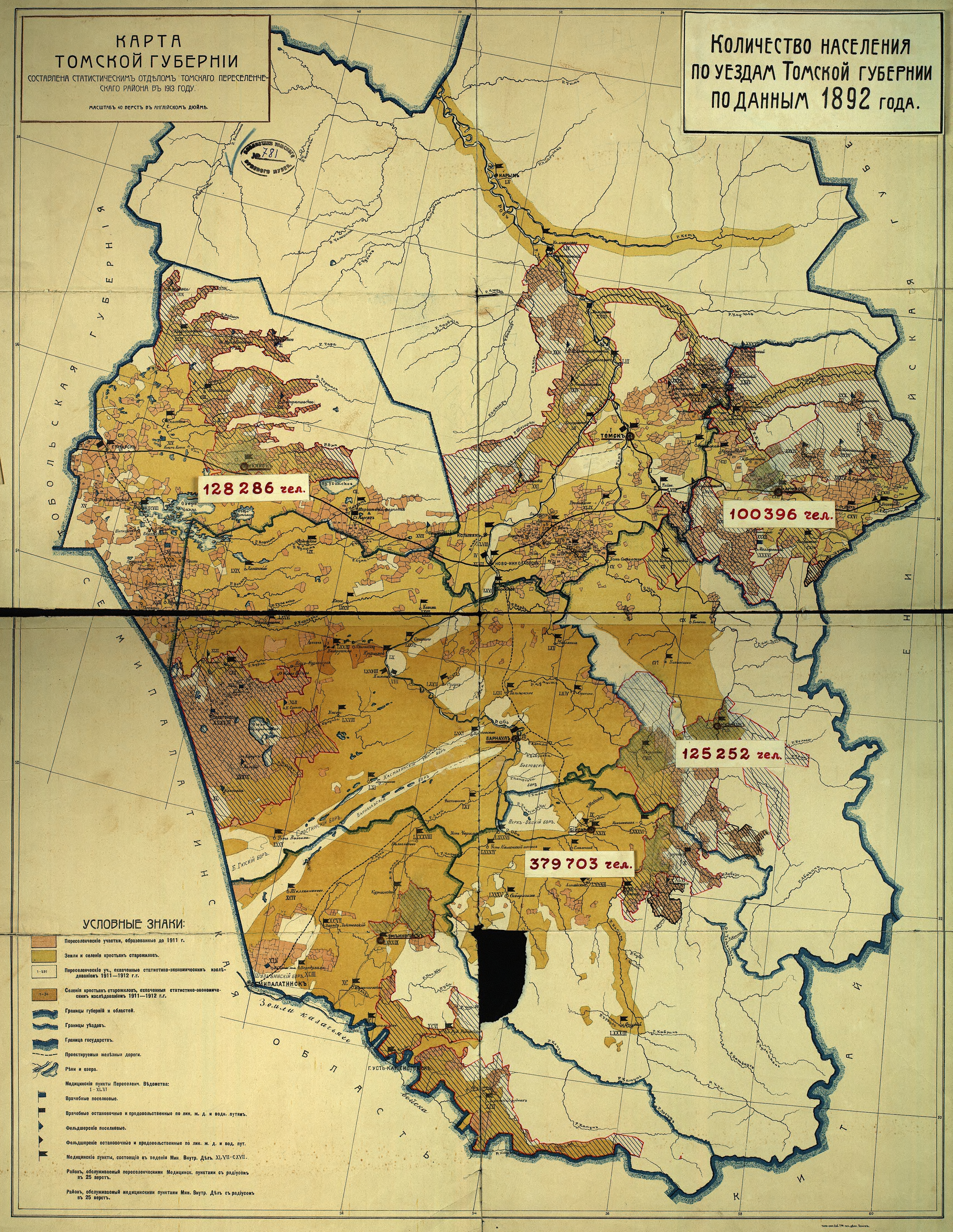 Количество населения по уездам Томской губернии по данным 1892 года