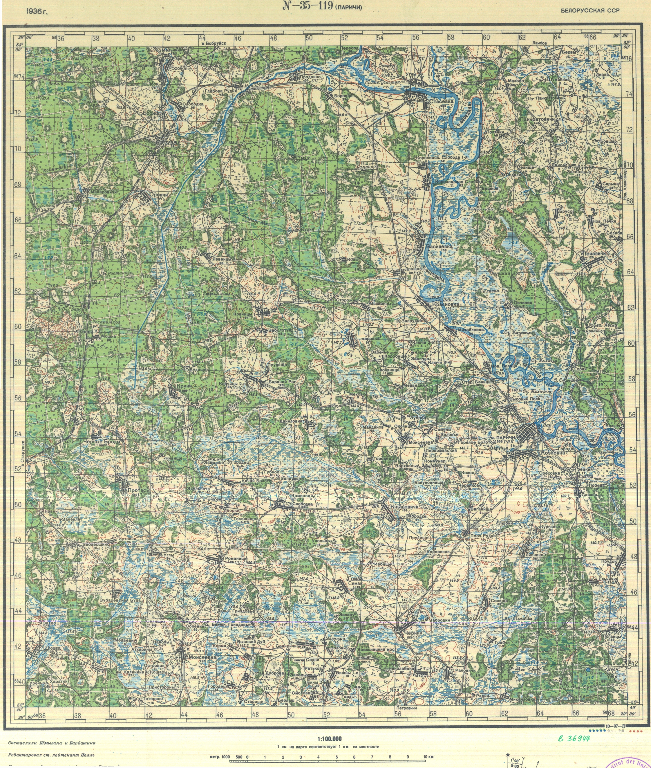 Гомельская - (N-35-119) - Паричи - 1936г
