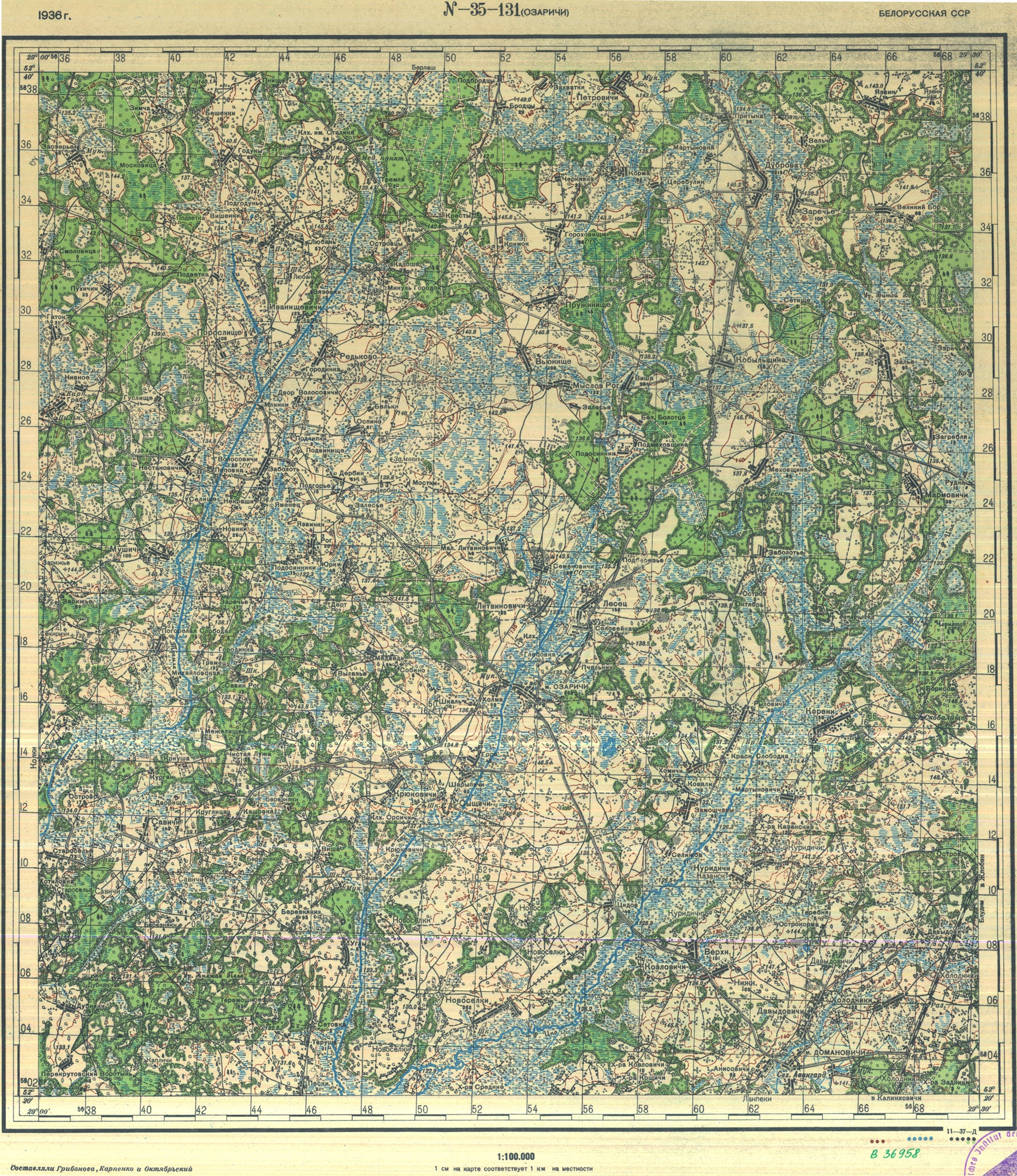 Гомельская - (N-35-131) - Озаричи - 1936г