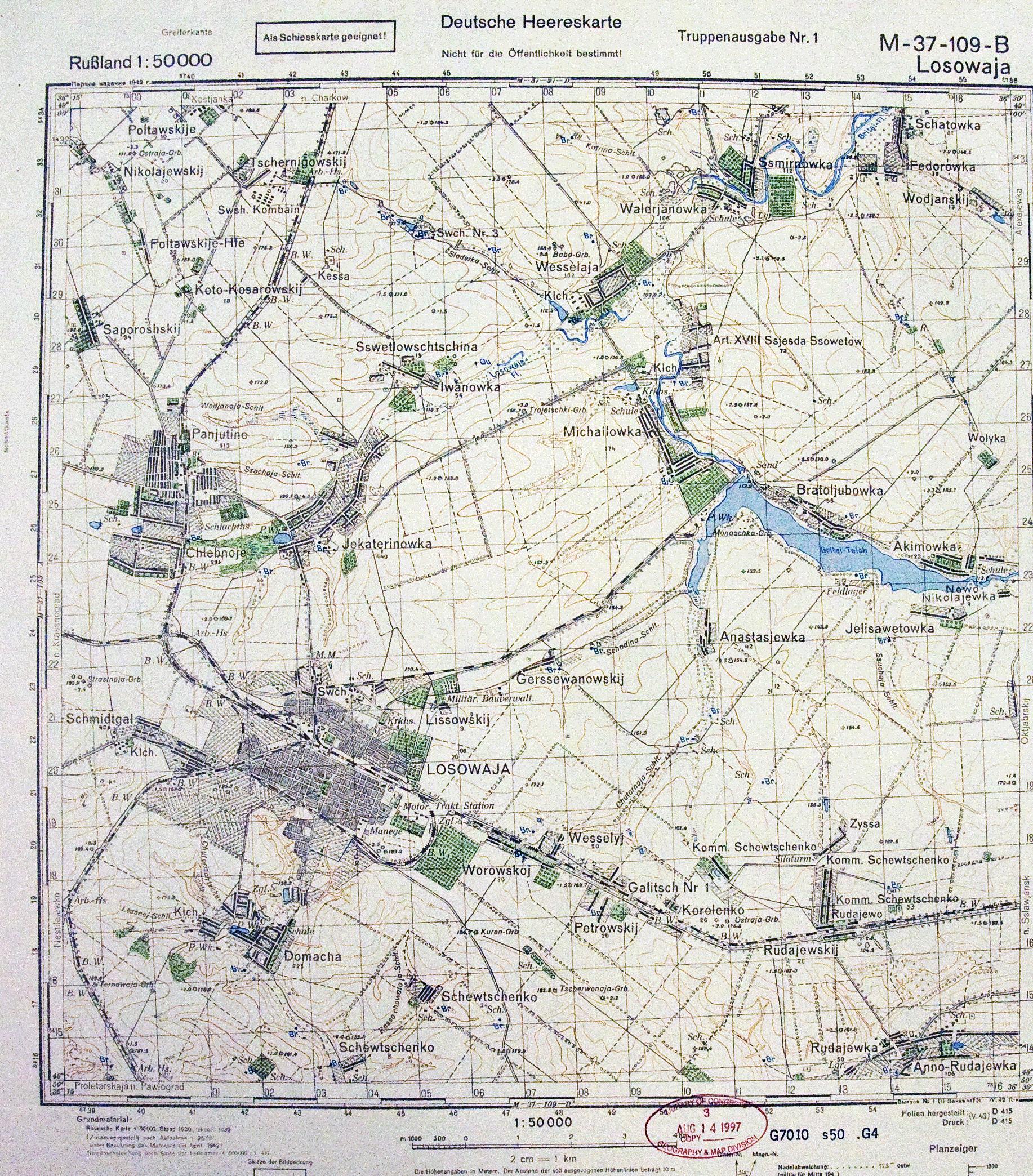 Харьковская - (M-37-109-В) - Лозовая - 1942г