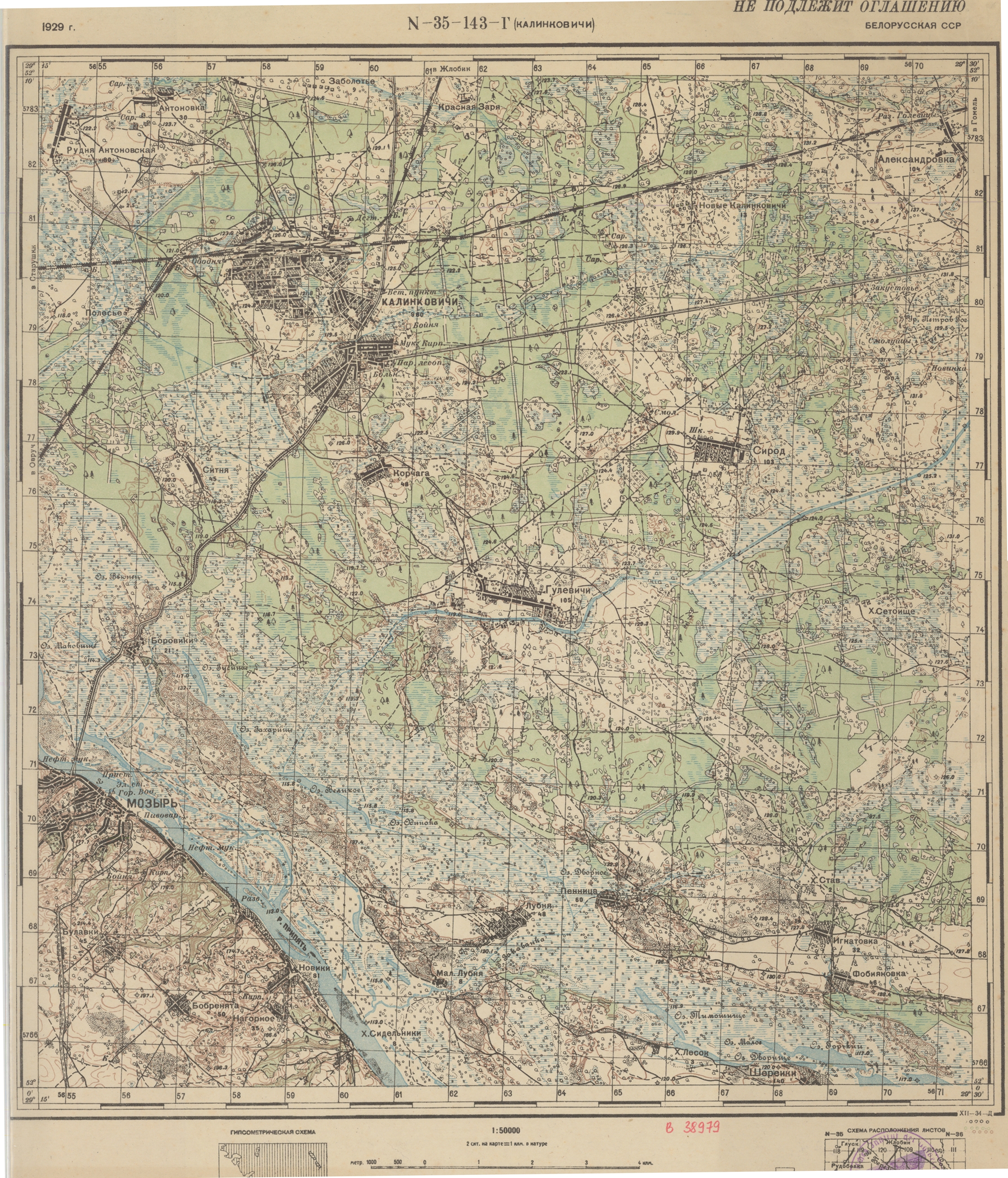 БССР -Гомельская (N-35-143-Г) - Калинковичи - 1929г