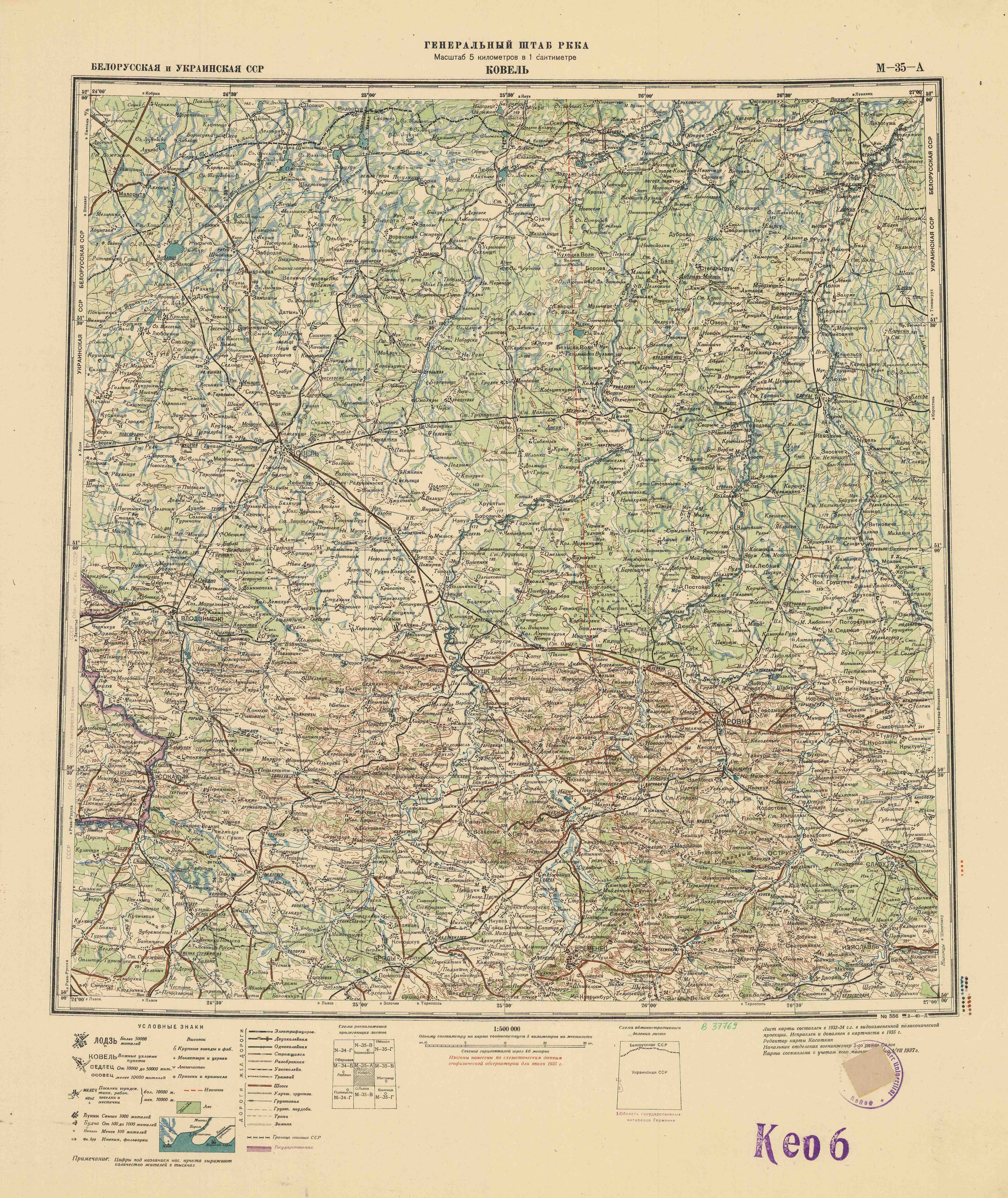 Номер листа: Ковель М-35-А
