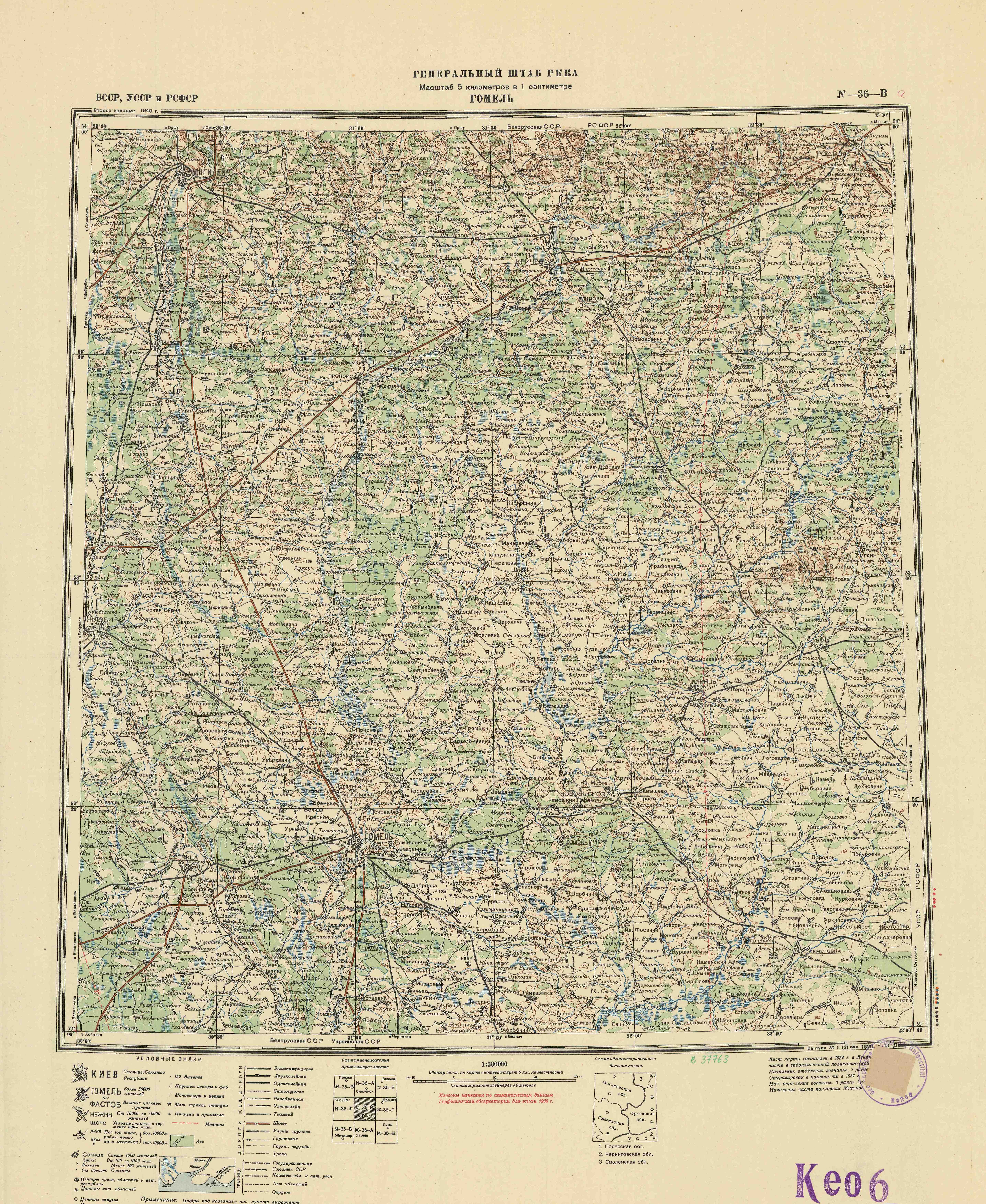 Номер листа: Гомель N-36-В