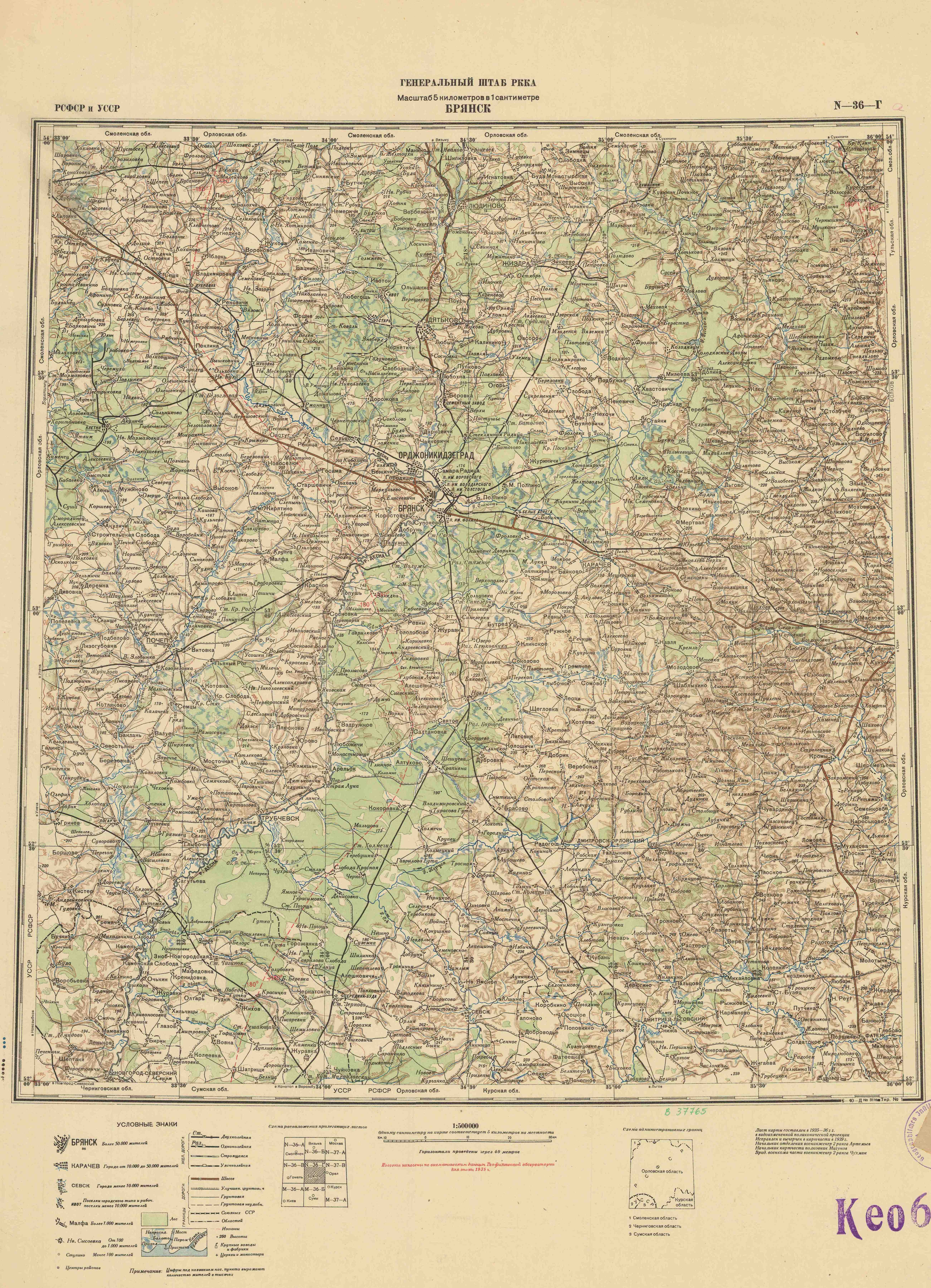 Номер листа: Брянск N-36-Г