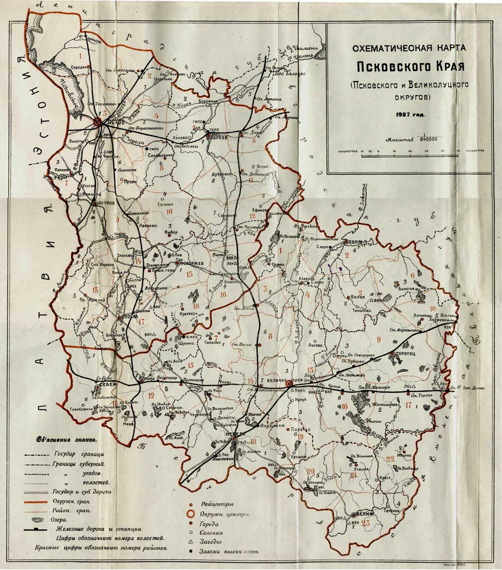 Схематическая карта Псковского Края (Псковского и Великолукского округов)
