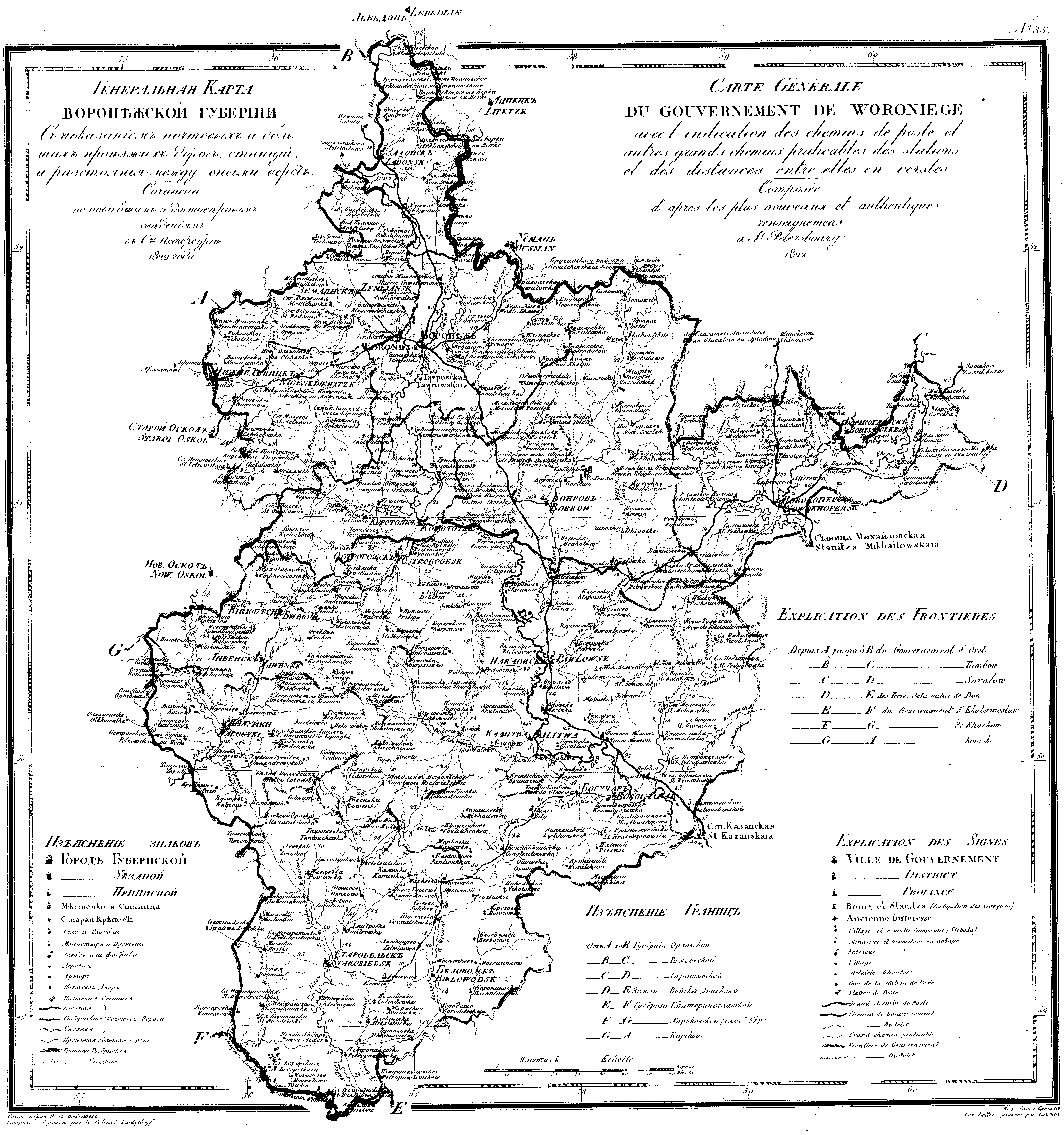 Карта Воронежской губ 1822 г