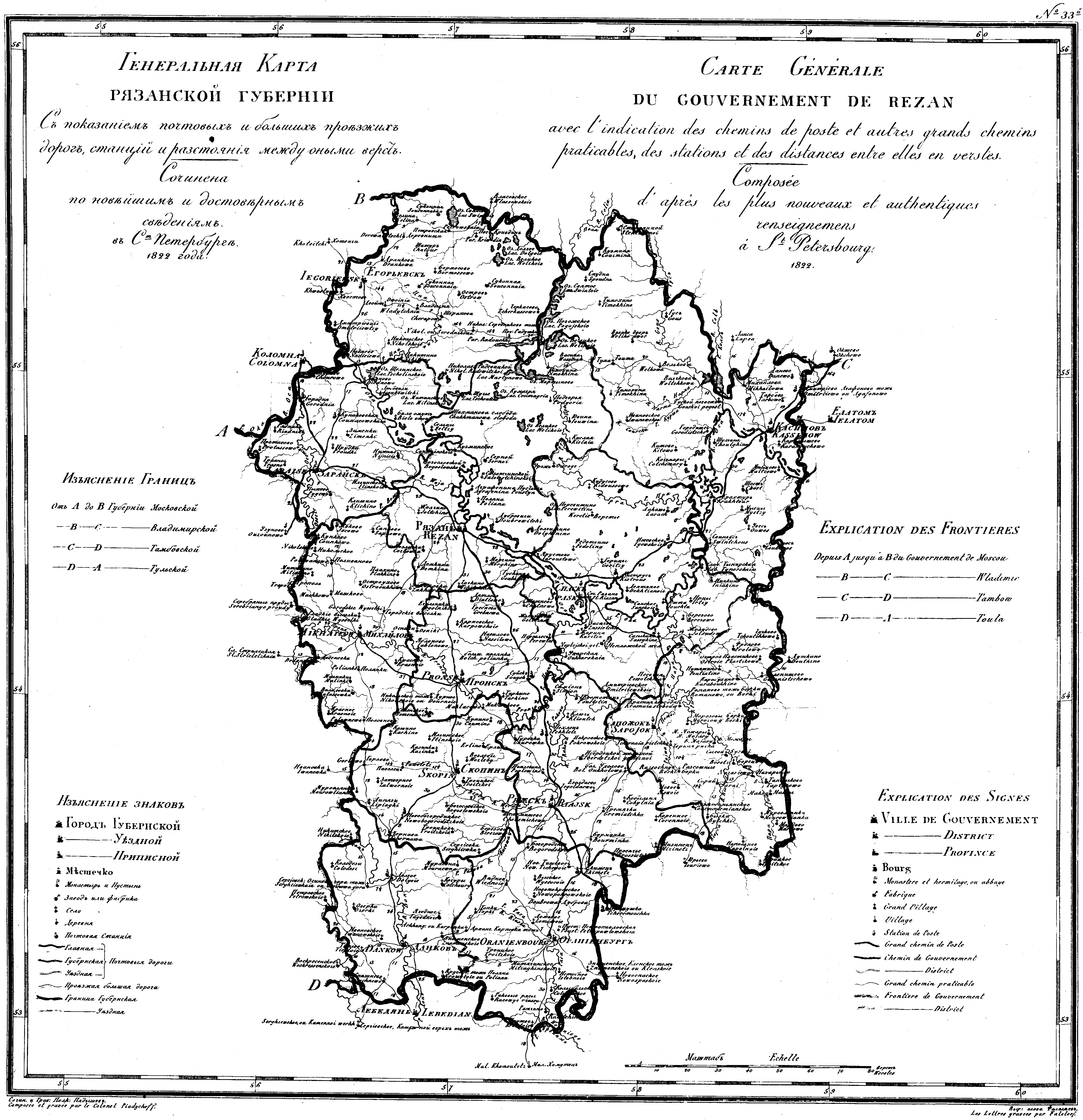 Карта Рязанской губ 1822 г
