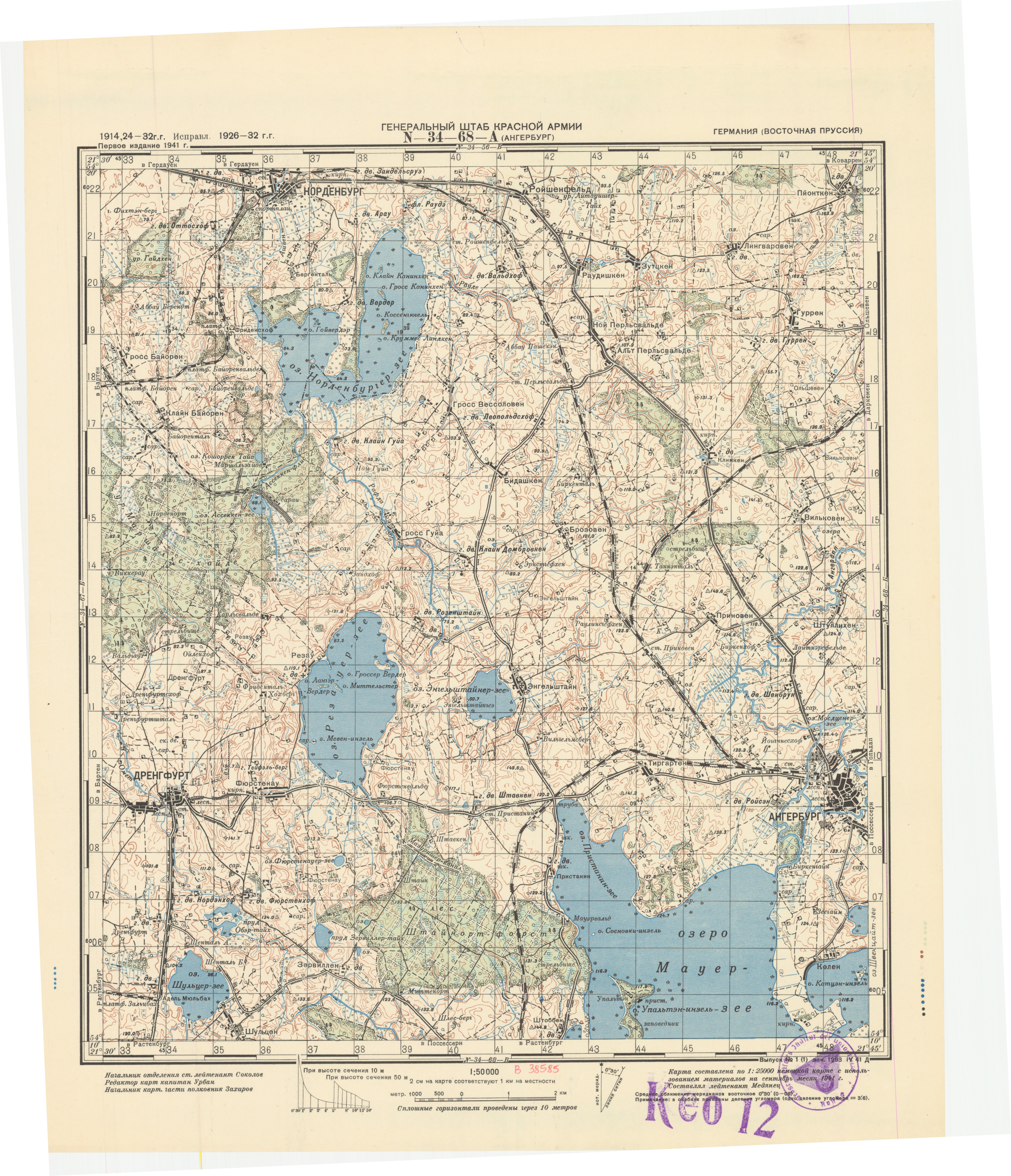Германия (Восточная Пруссия) - (N-34-68-А) - Ангербург - 1932г