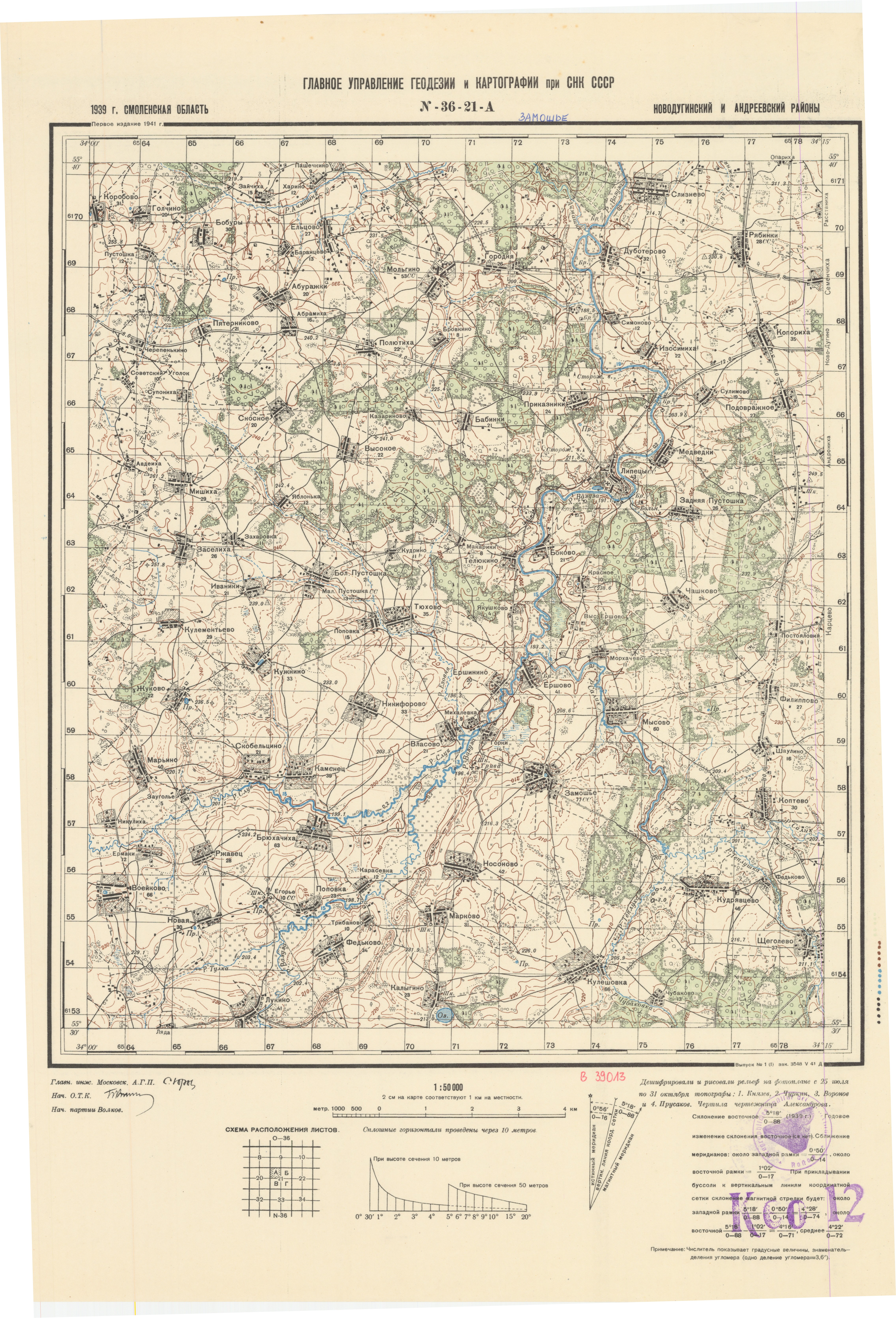 Смоленская - (N-36-21-A) - Замошье - Новодугинский и Андреевский районы - 1939г